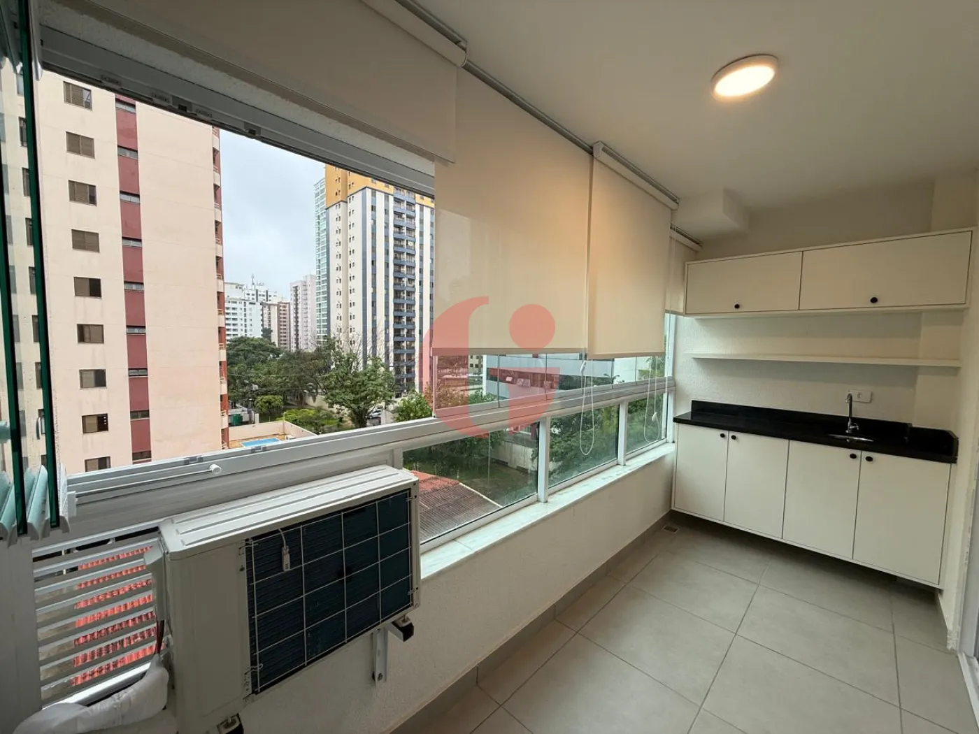 - Sacada gourmet com pia e armário