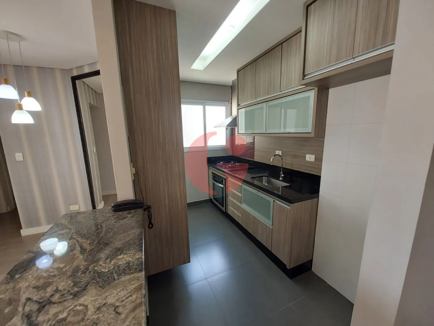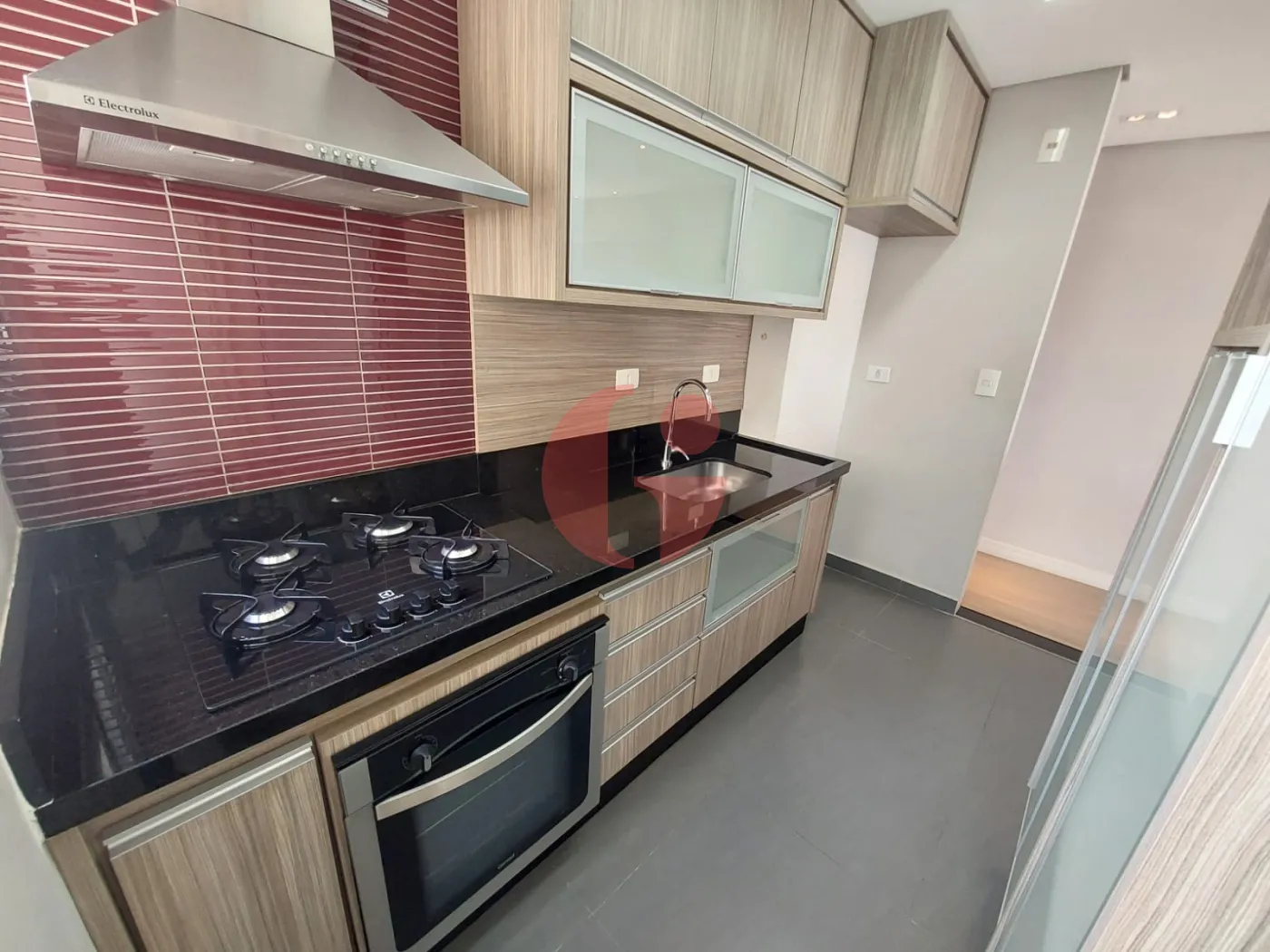 - Cozinha americana, com ooktop, forno e coifa na cozinha