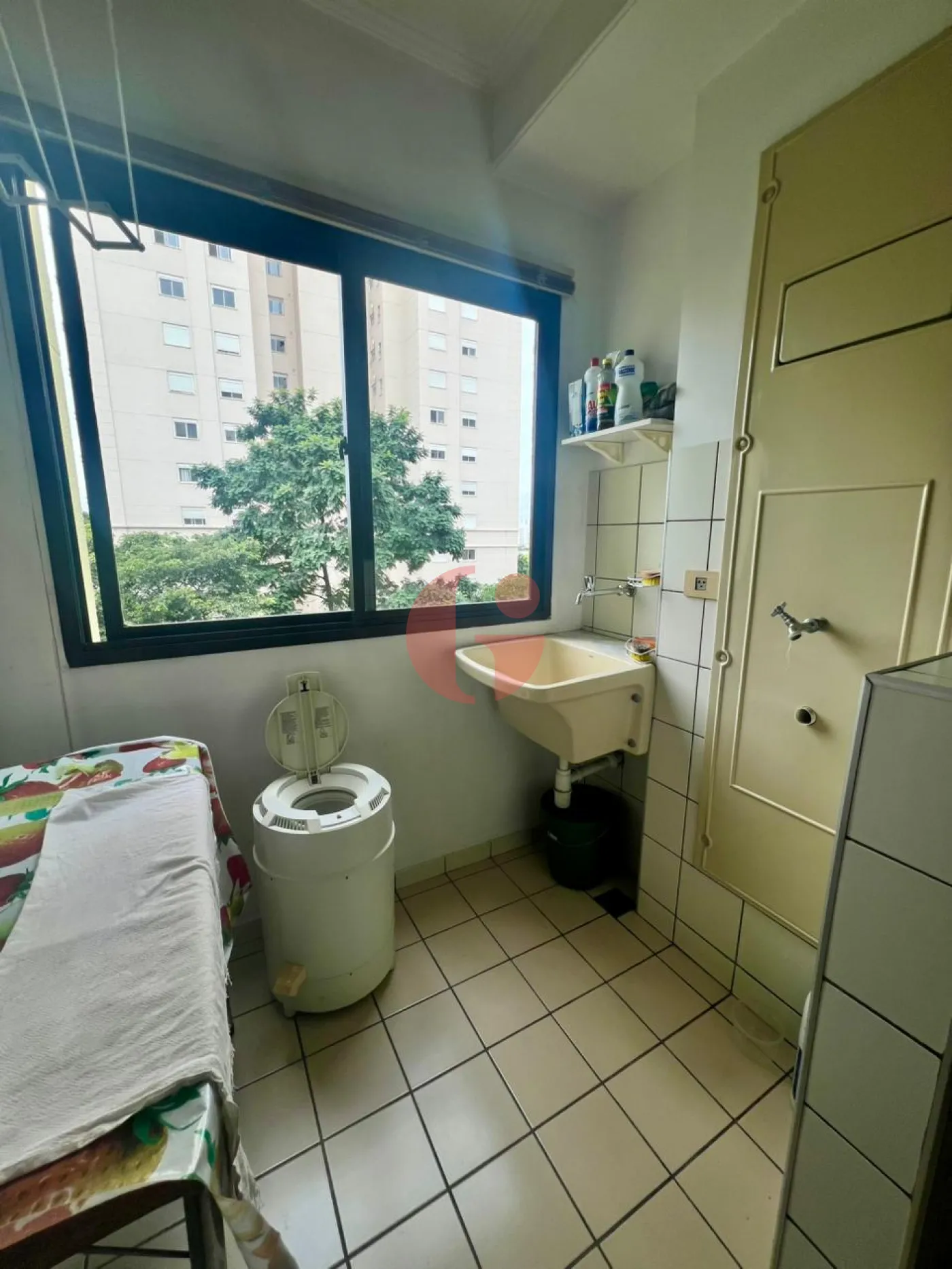 Lavanderia com um aparelho de secar roupa