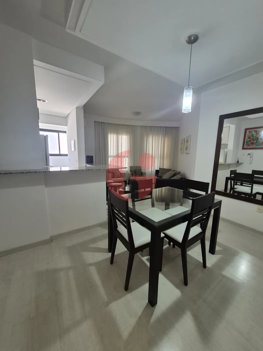- Sala para 2 ambientes, com sofá, mesa de jantar e cadeiras