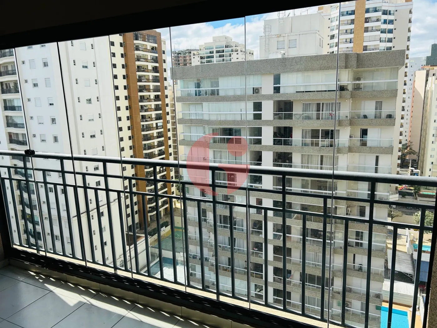 - Sala ampla com sacada ampla e com fechamento de cortina de vidro blindex