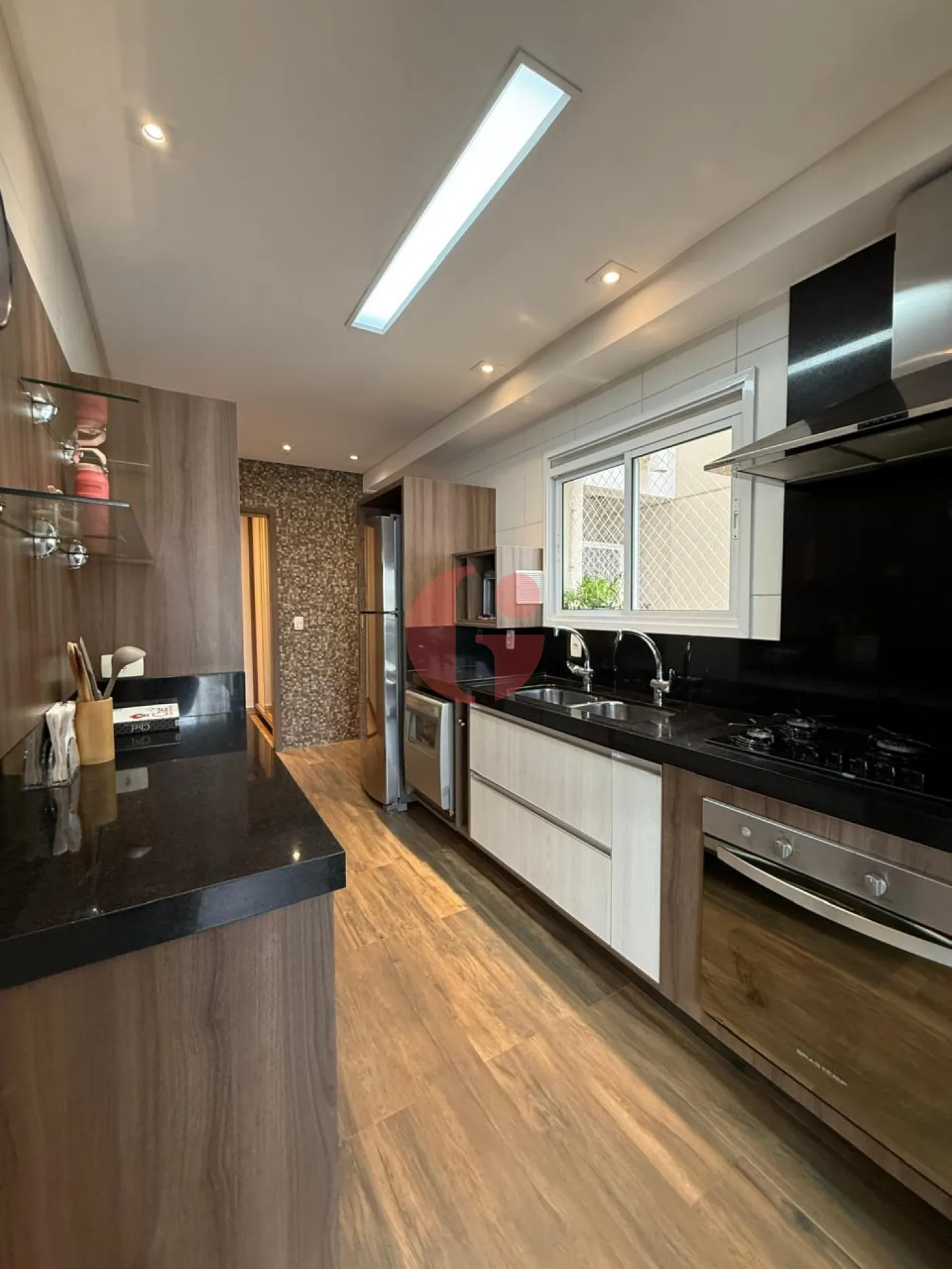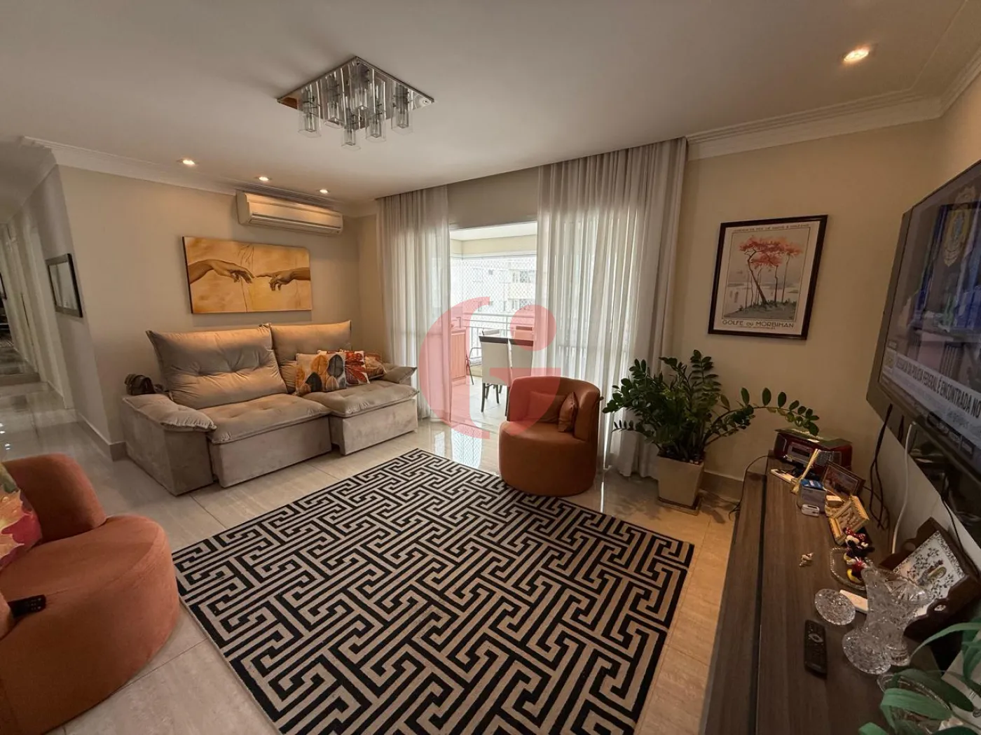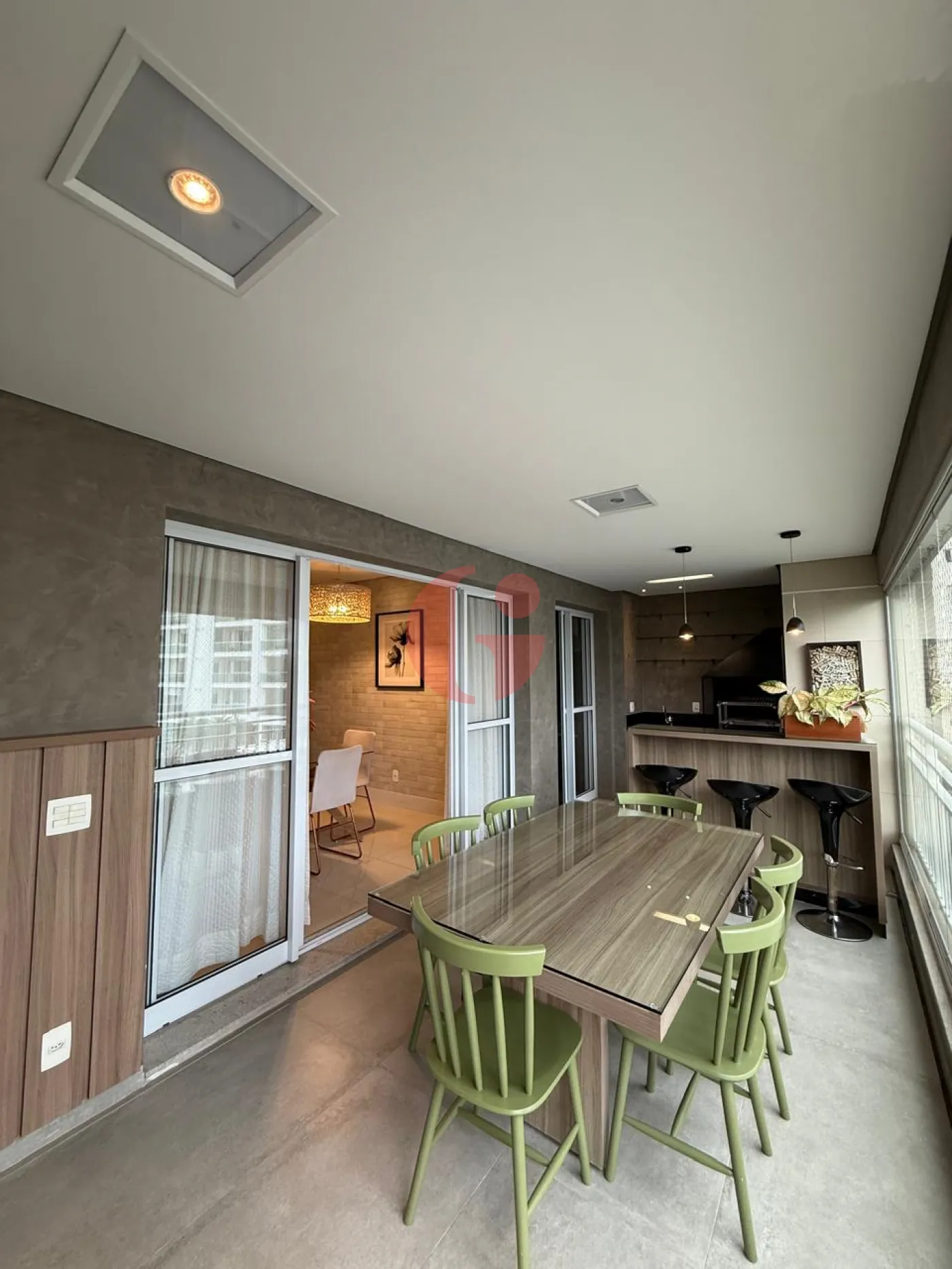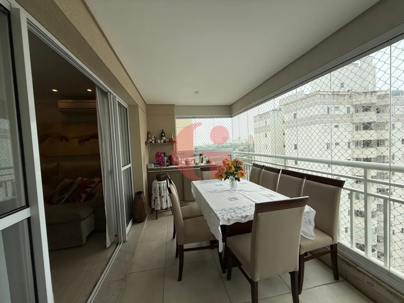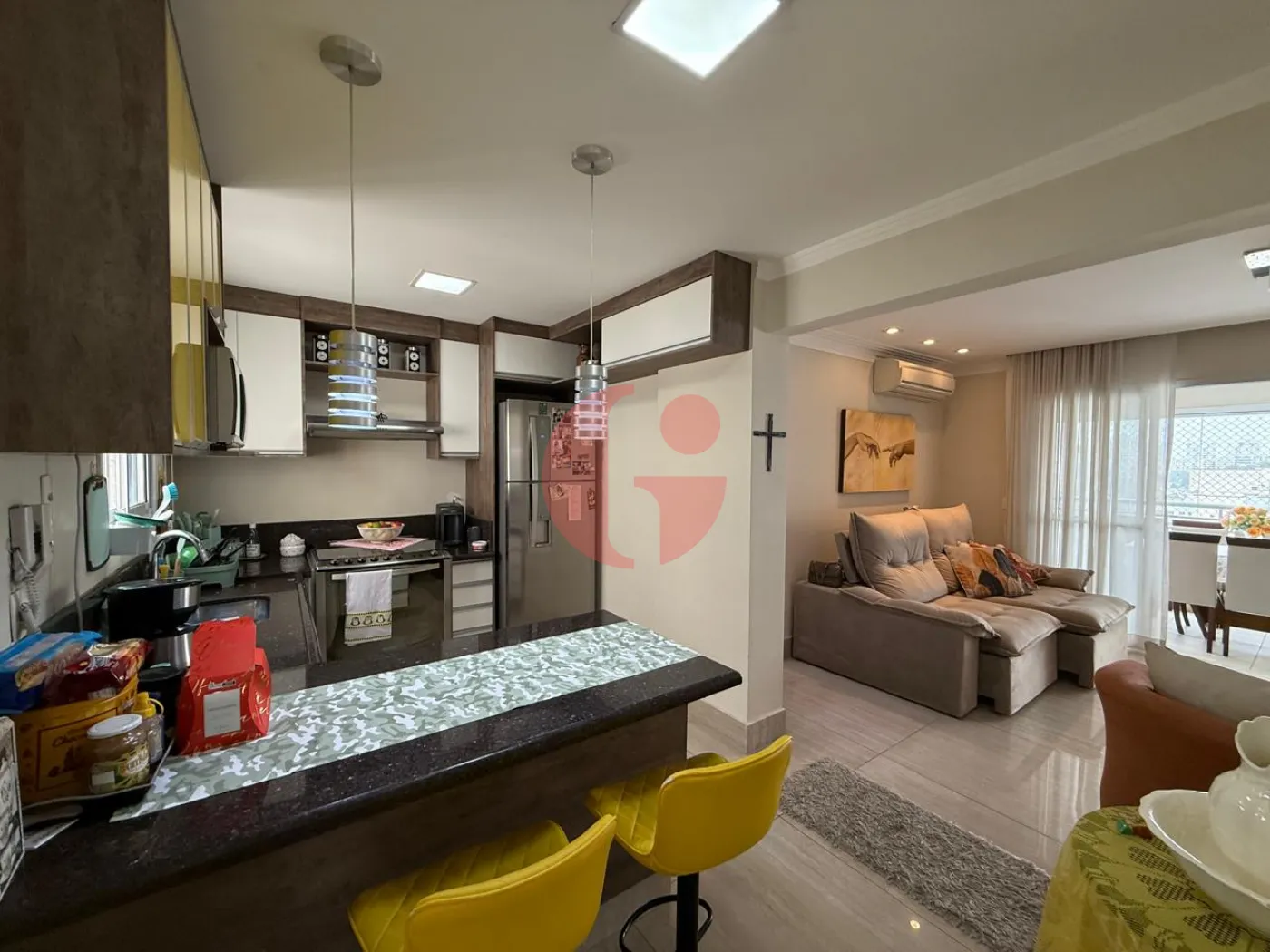 Apartamento com 3 dormitórios, sendo 1 suite, ar condicionado nos quartos, sala para 2 ambientes com ar condicionado, sacada com churrasqueira, lavabo, cozinha planejada, área de serviço e 2 vagas de garagem.
