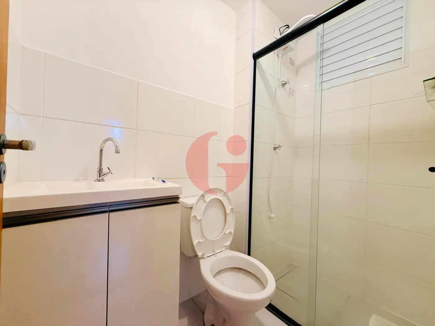 - 1 Banheiro com box de vidro e gabinete