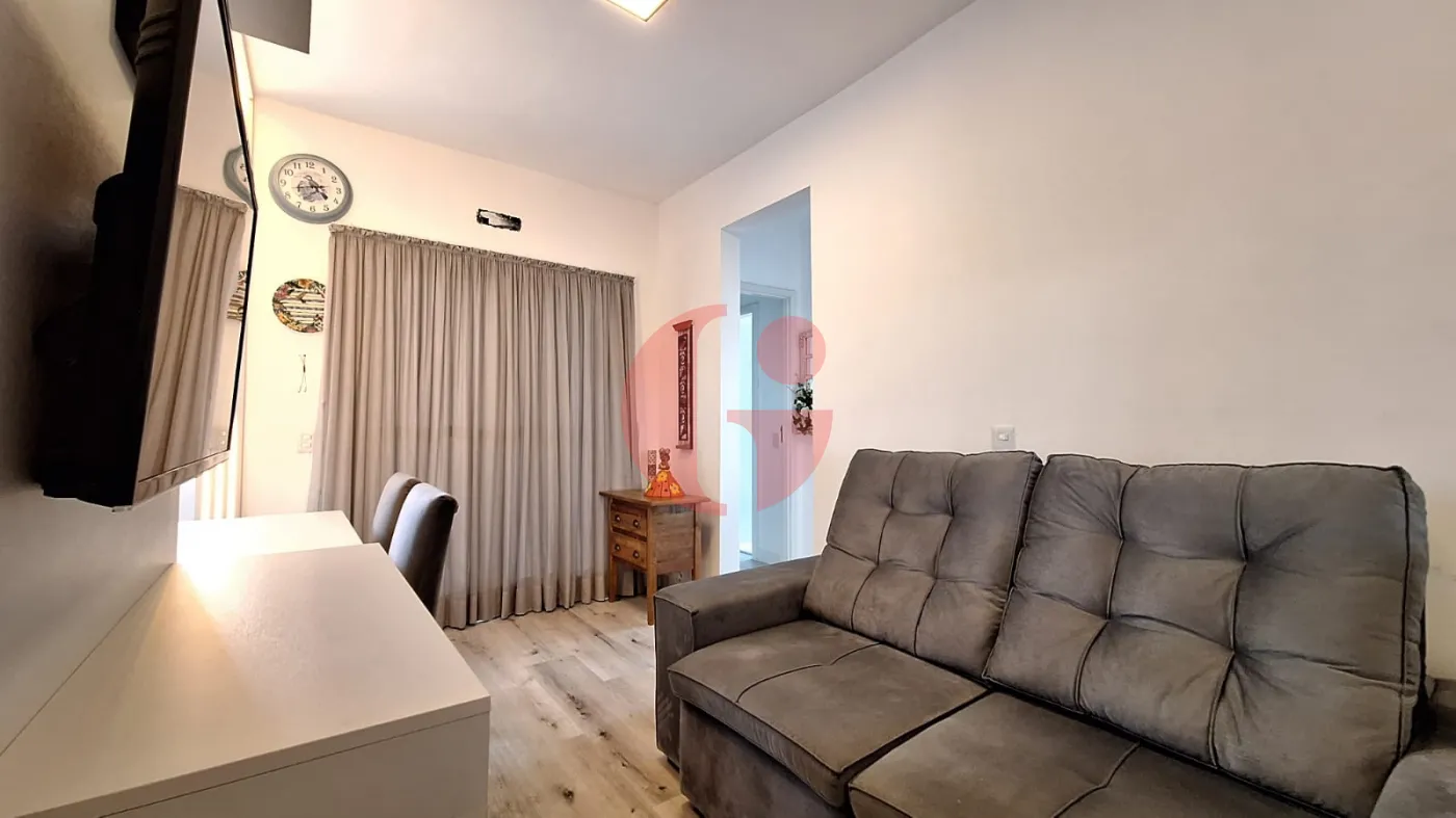 - Sala integrada com a cozinha com: 2 sofás, rack e TV de led, preparado para ar condicionado