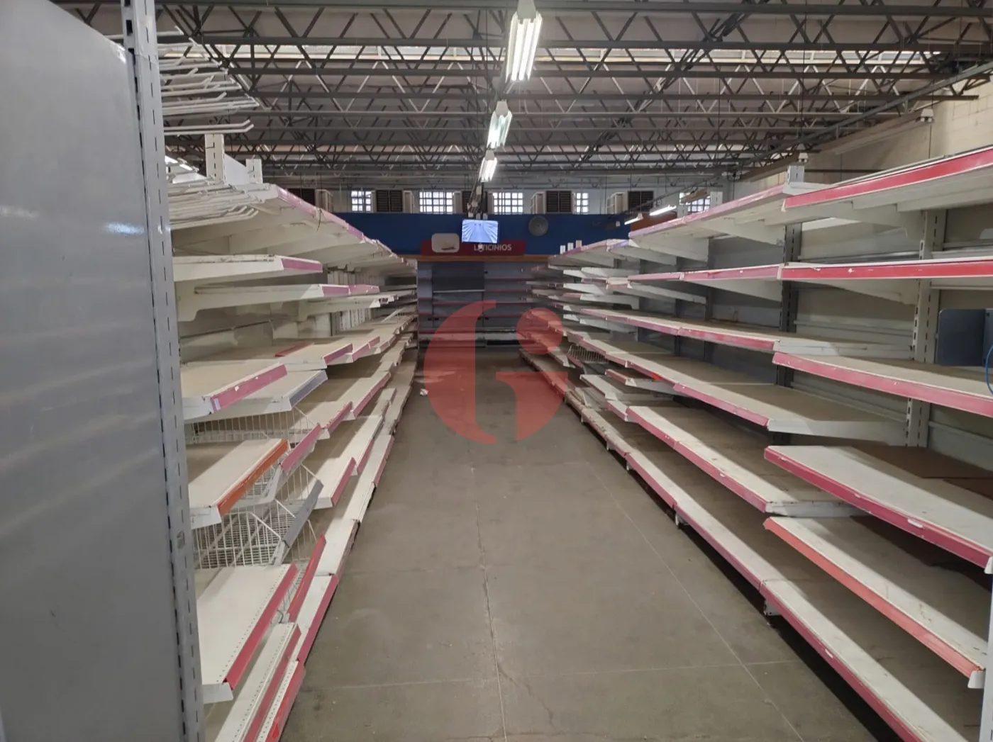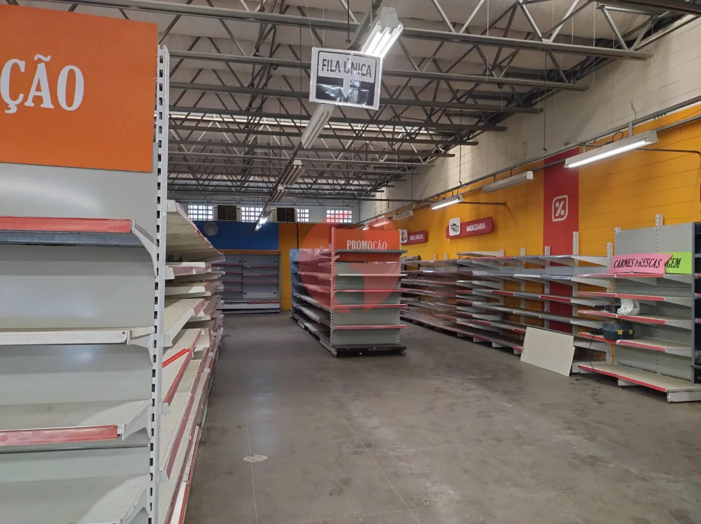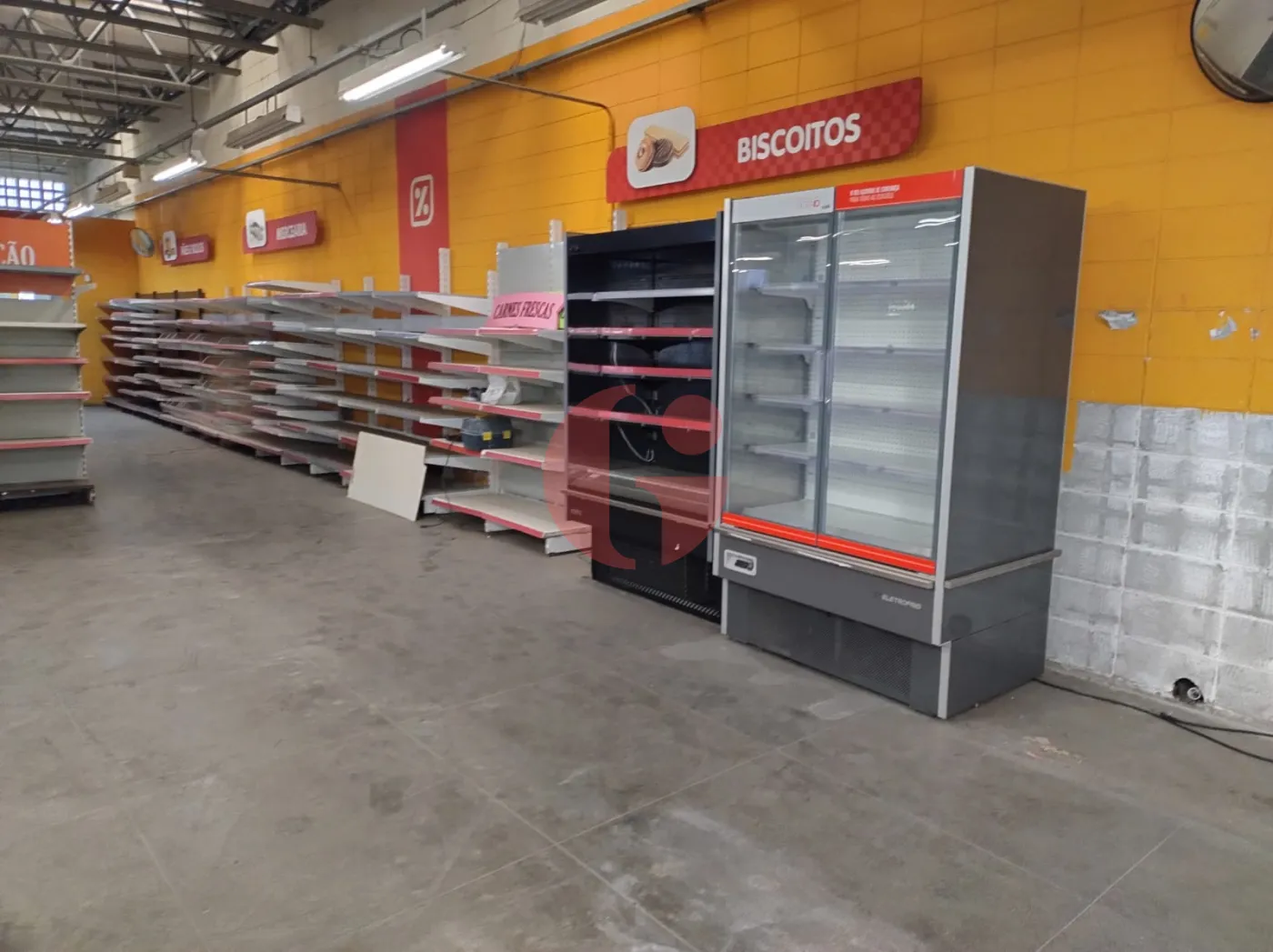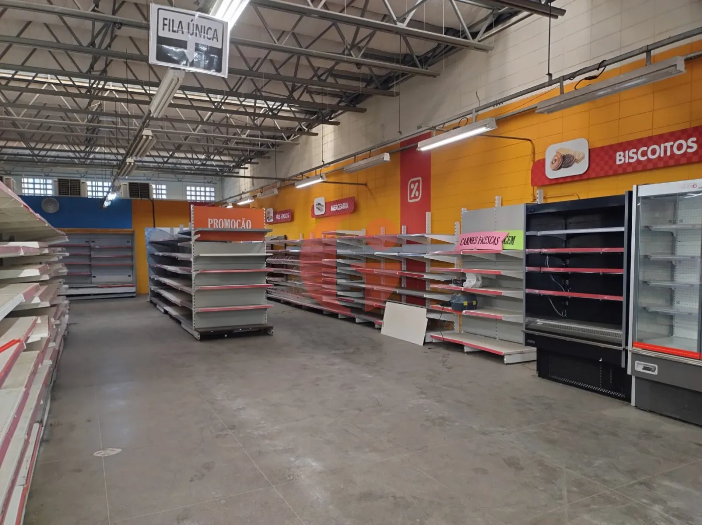 - Com gondolas, freezers, camará fria, geladeiras, check-outs, etc