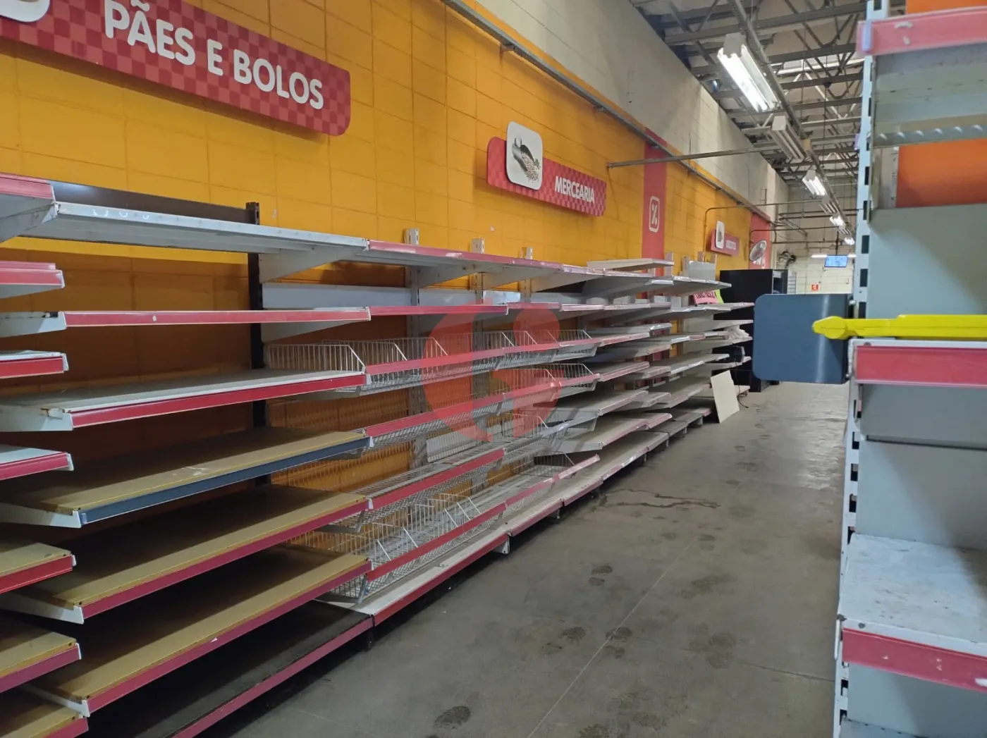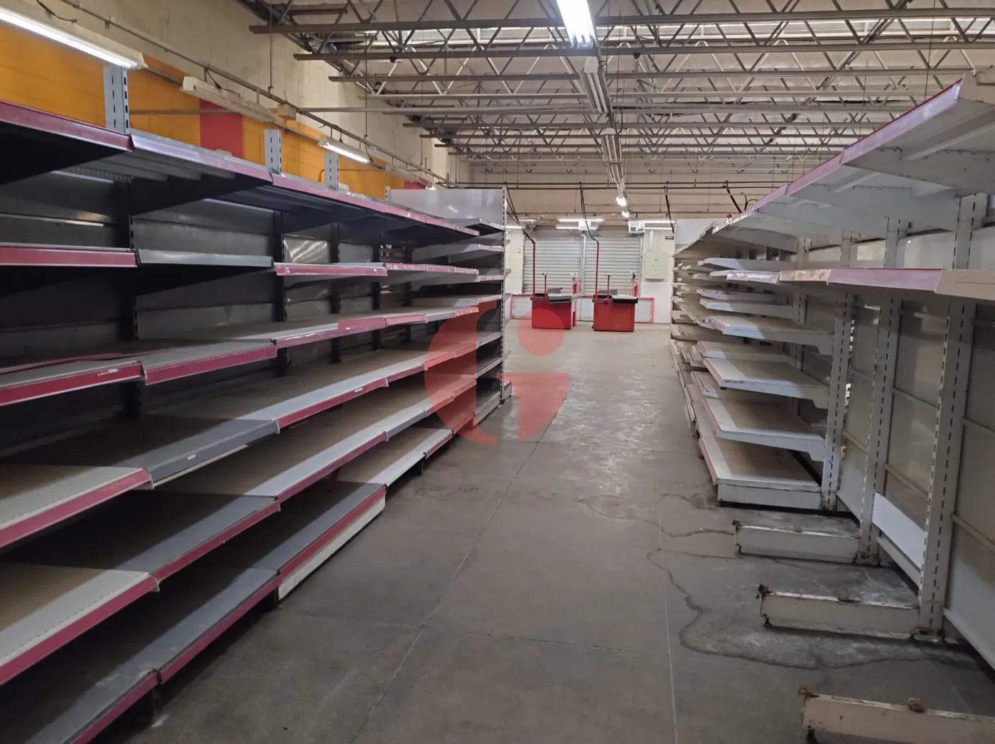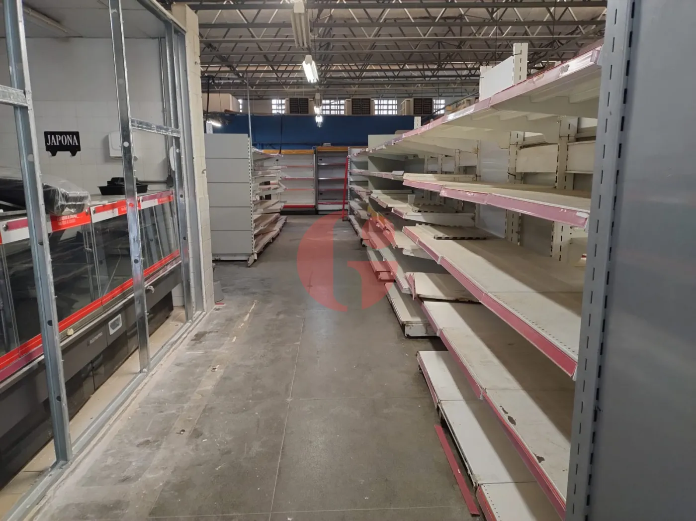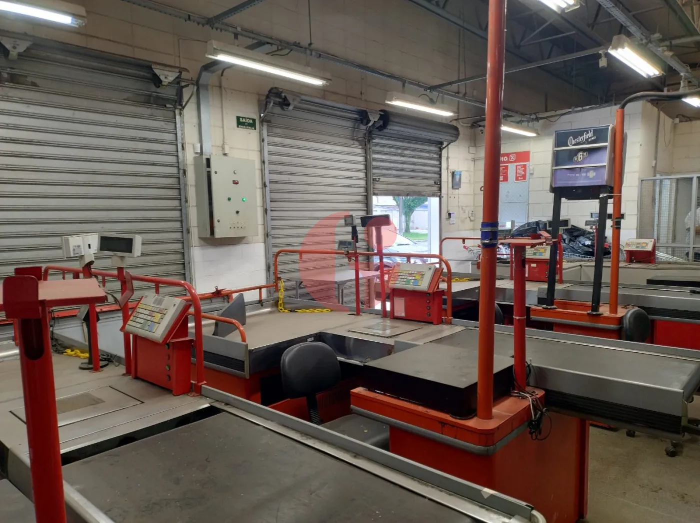 - Com gondolas, freezers, camará fria, geladeiras, check-outs, etc