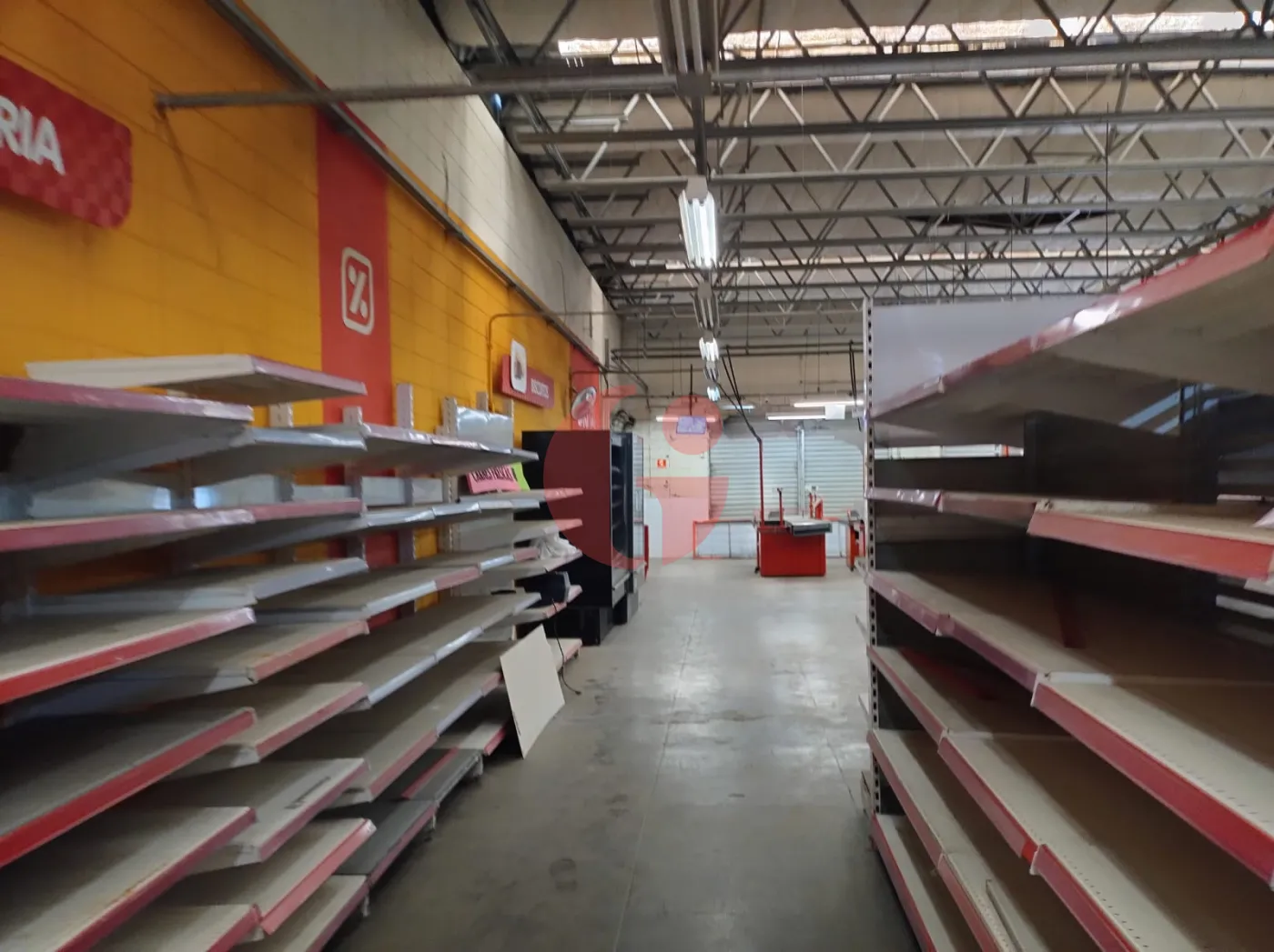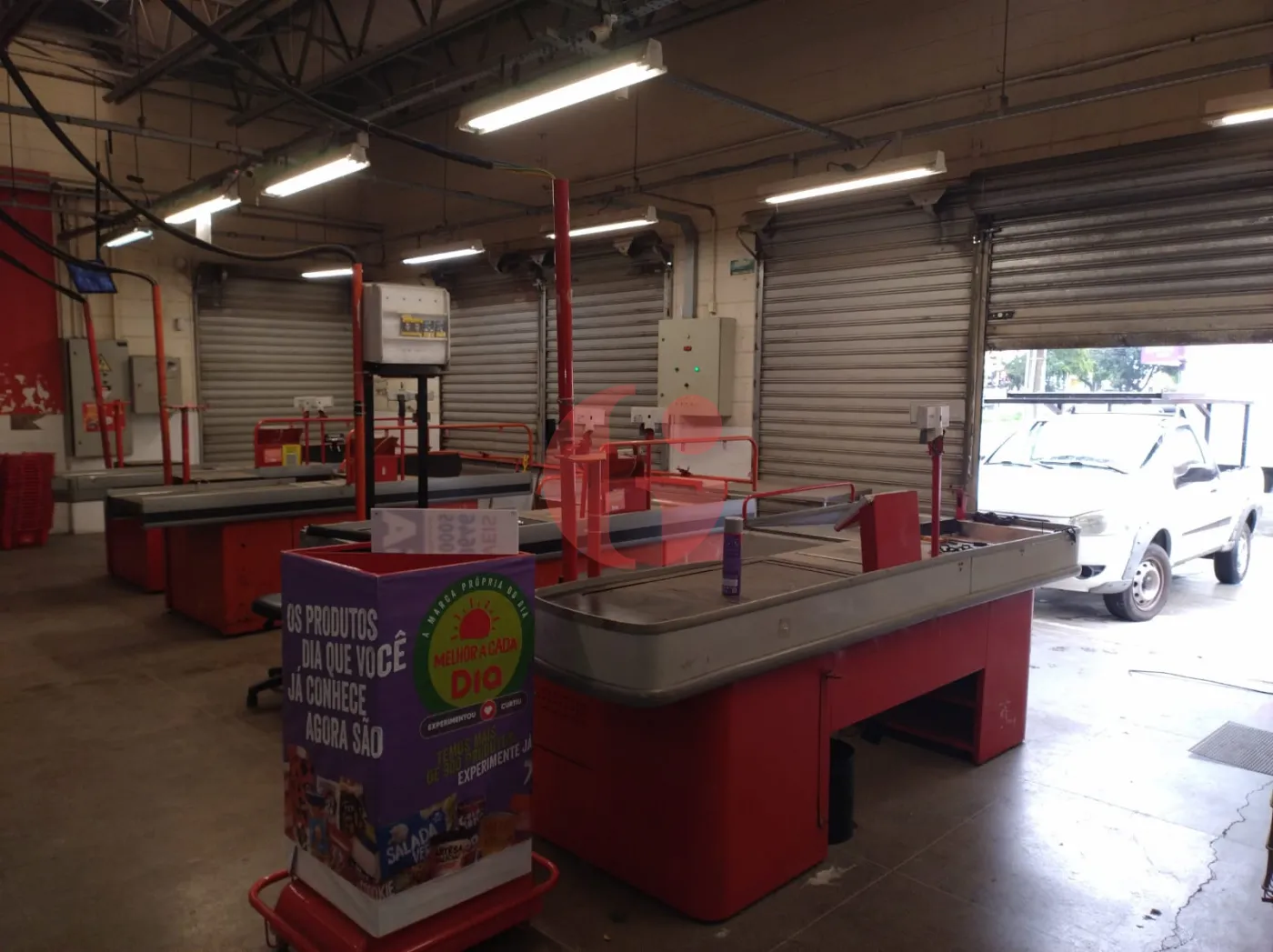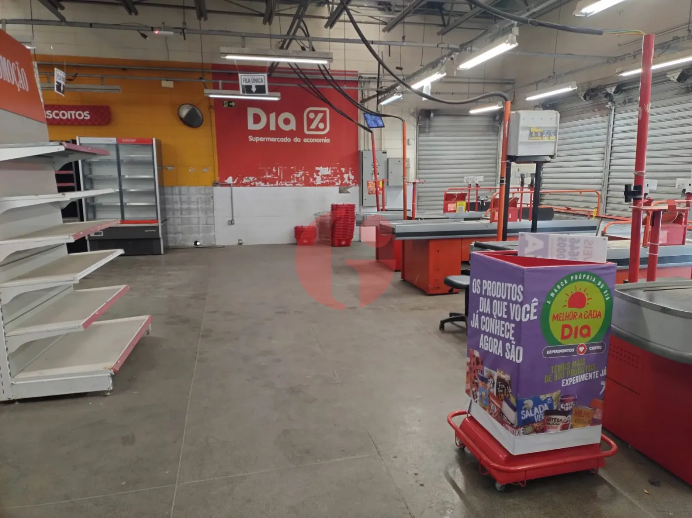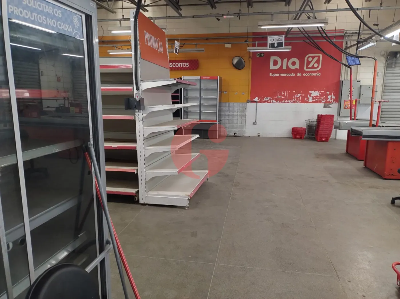 - Com gondolas, freezers, camará fria, geladeiras, check-outs, etc