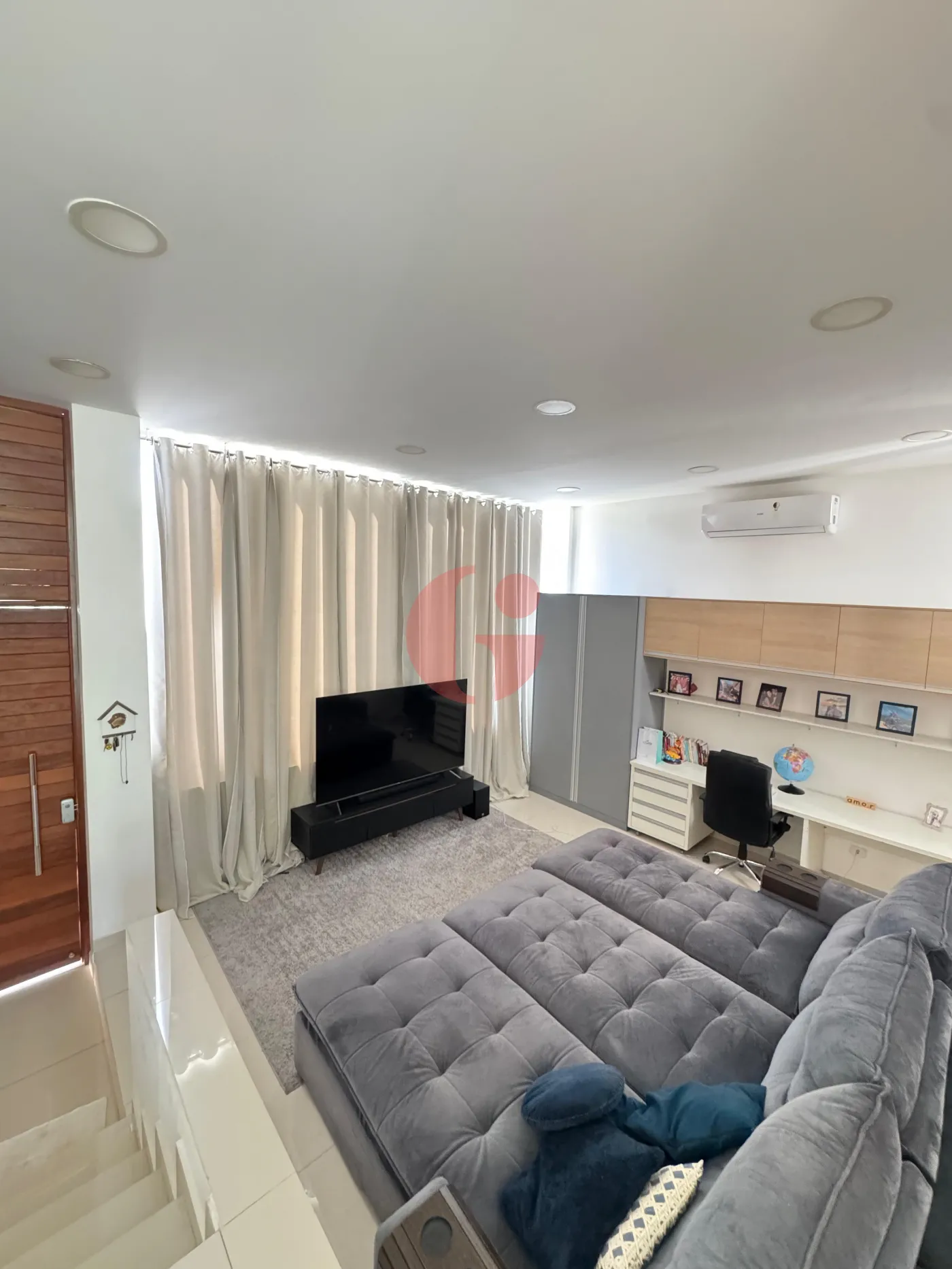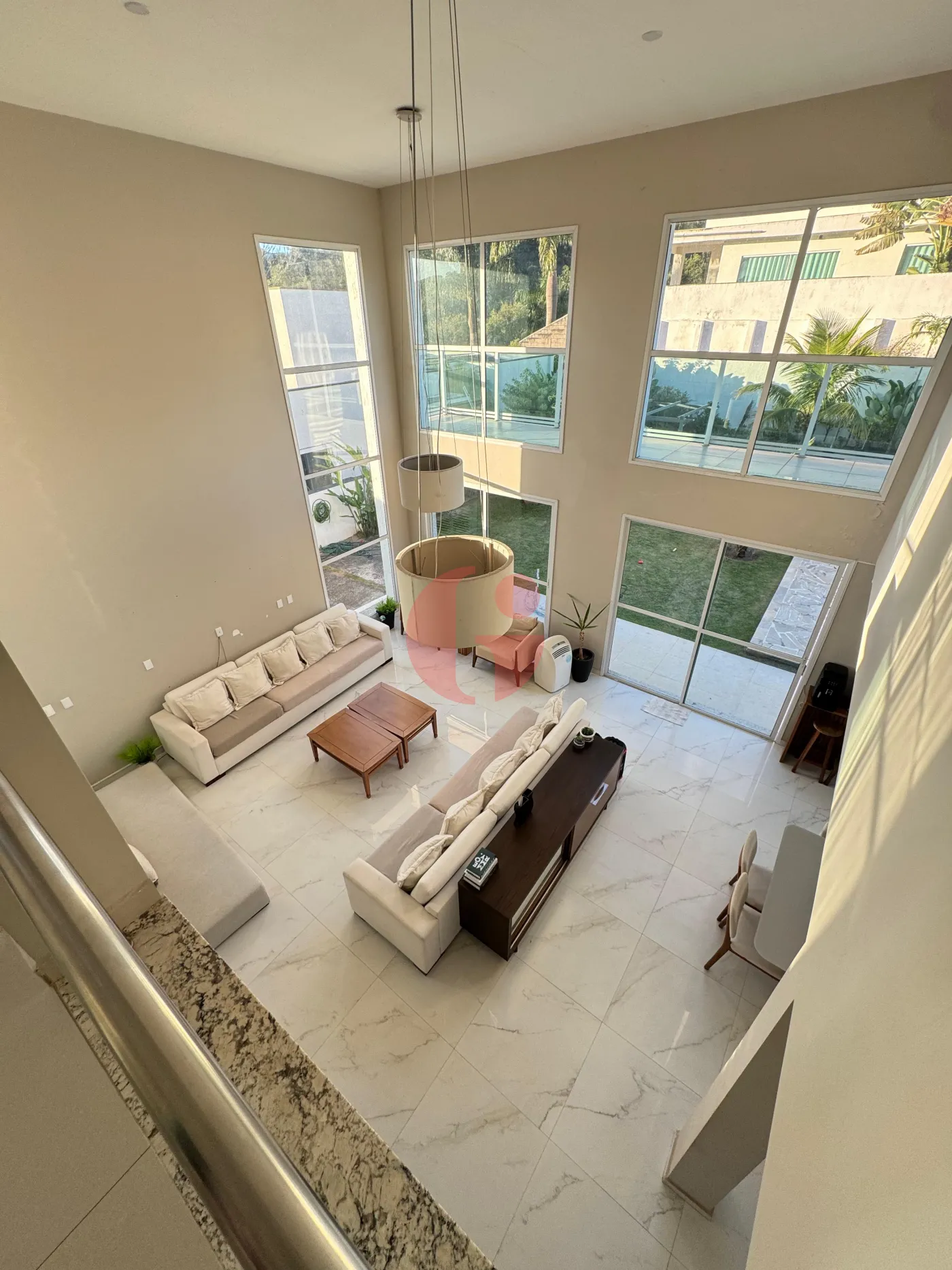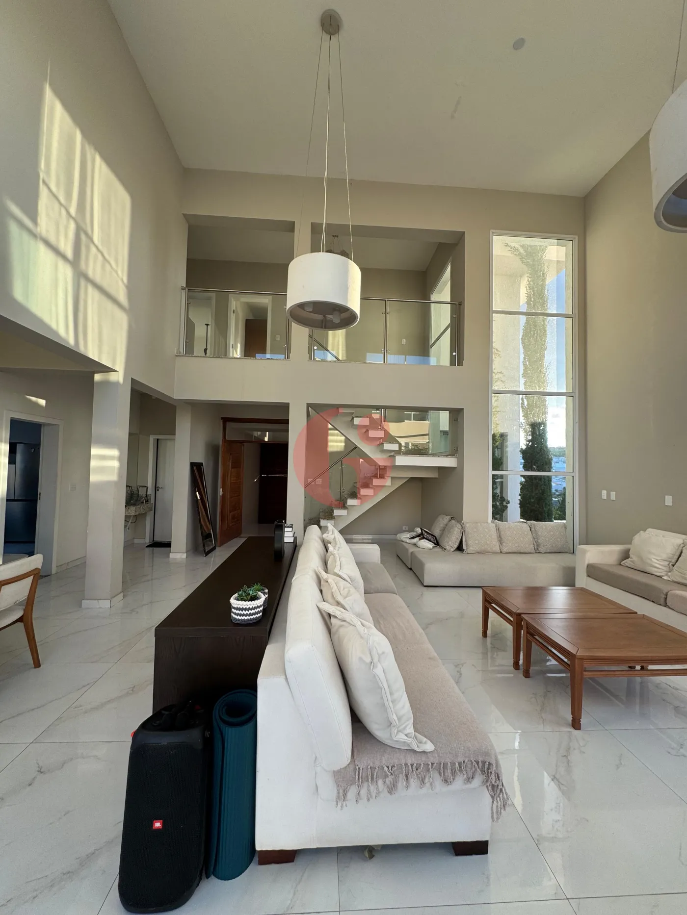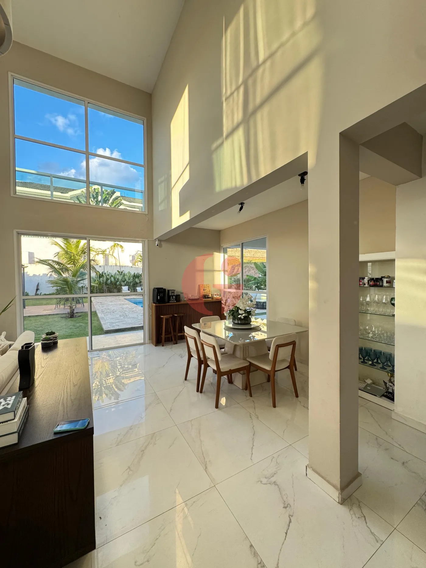 - Sala de estar e jantar com pé direito alto e muita iluminação natural