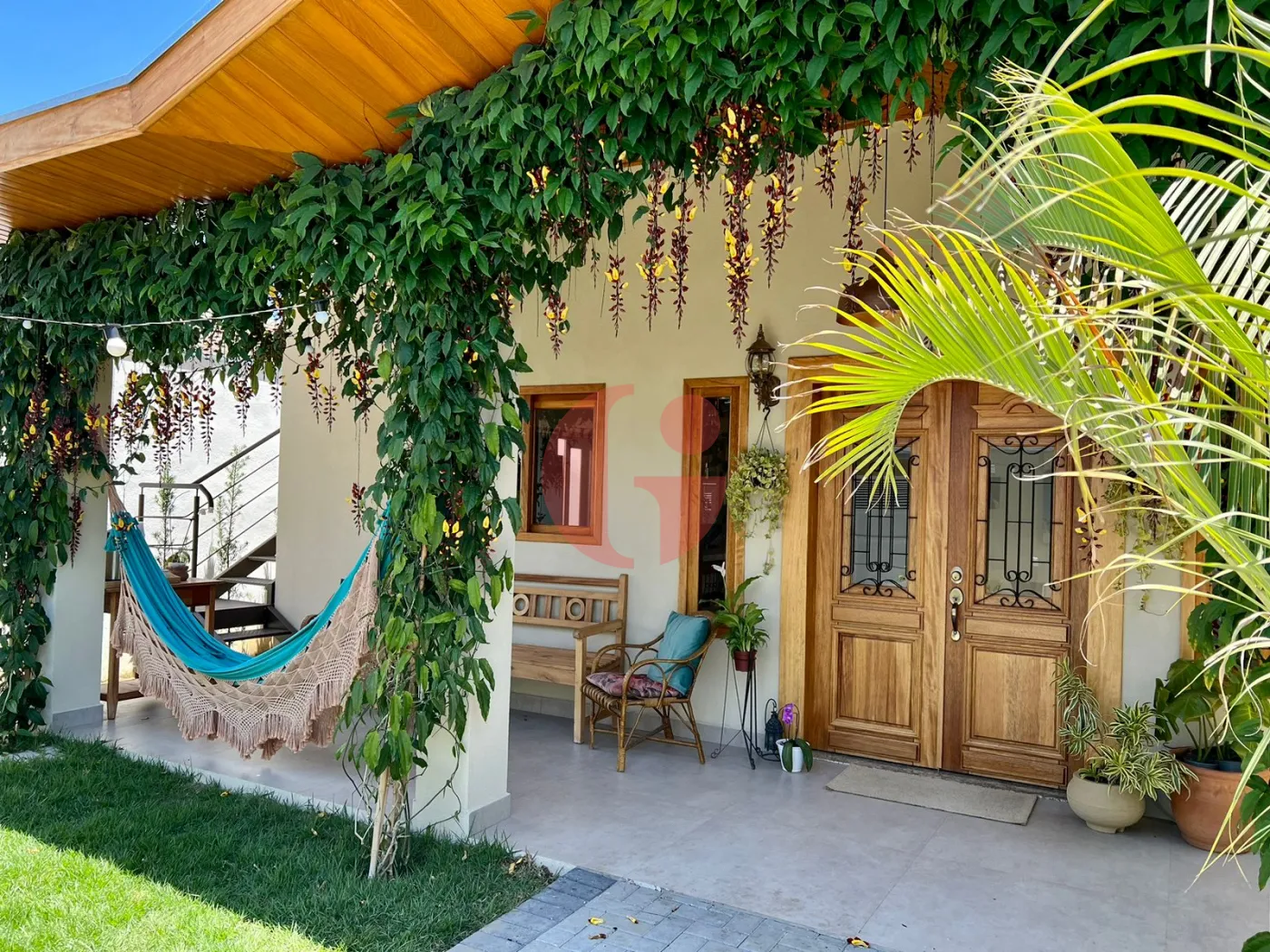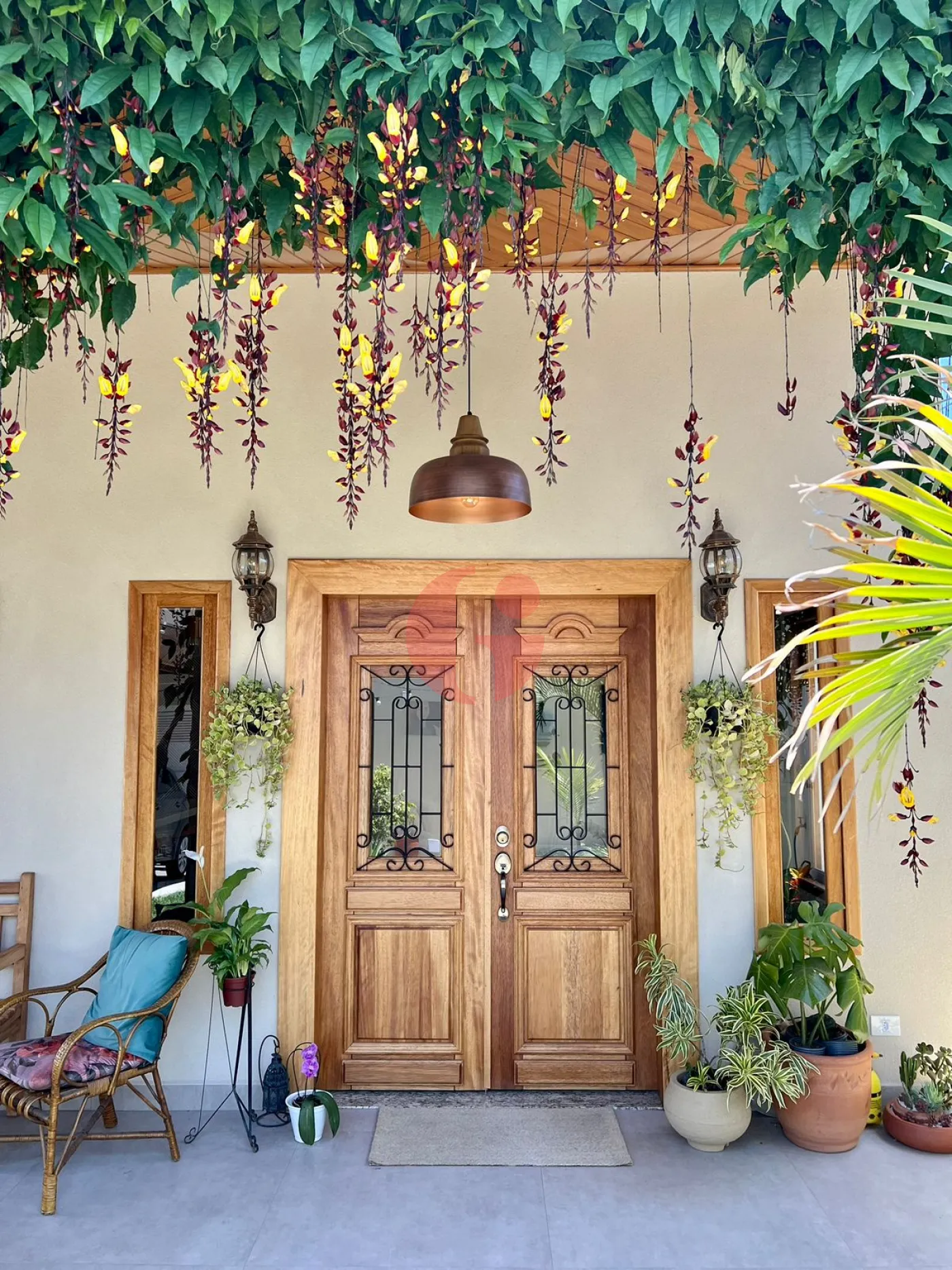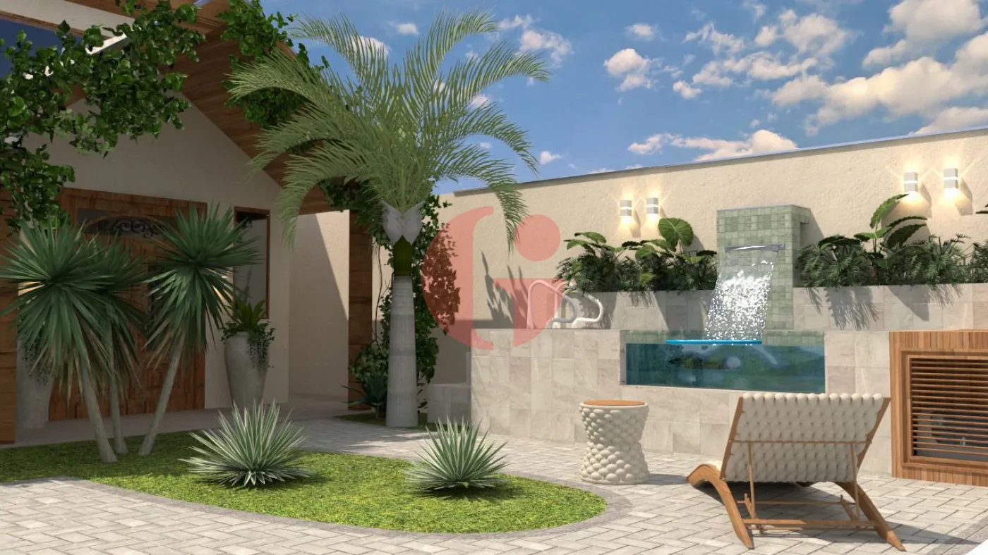 - Área Externa com muitas plantas e flores