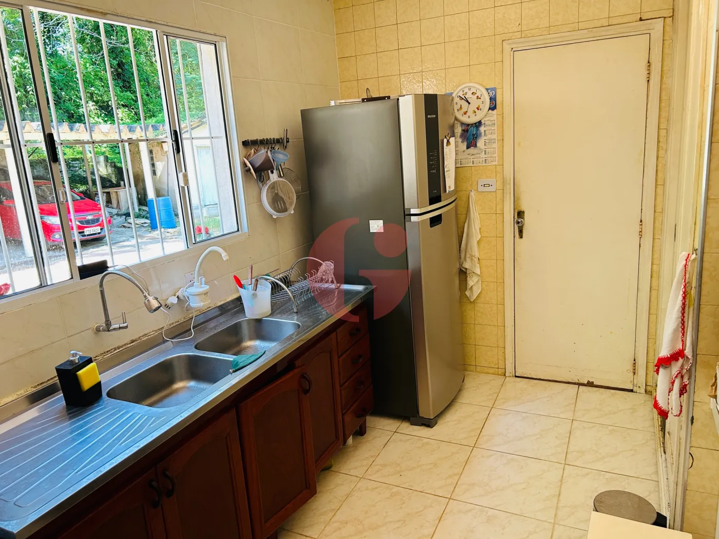 - Cozinha com armários , piso frio