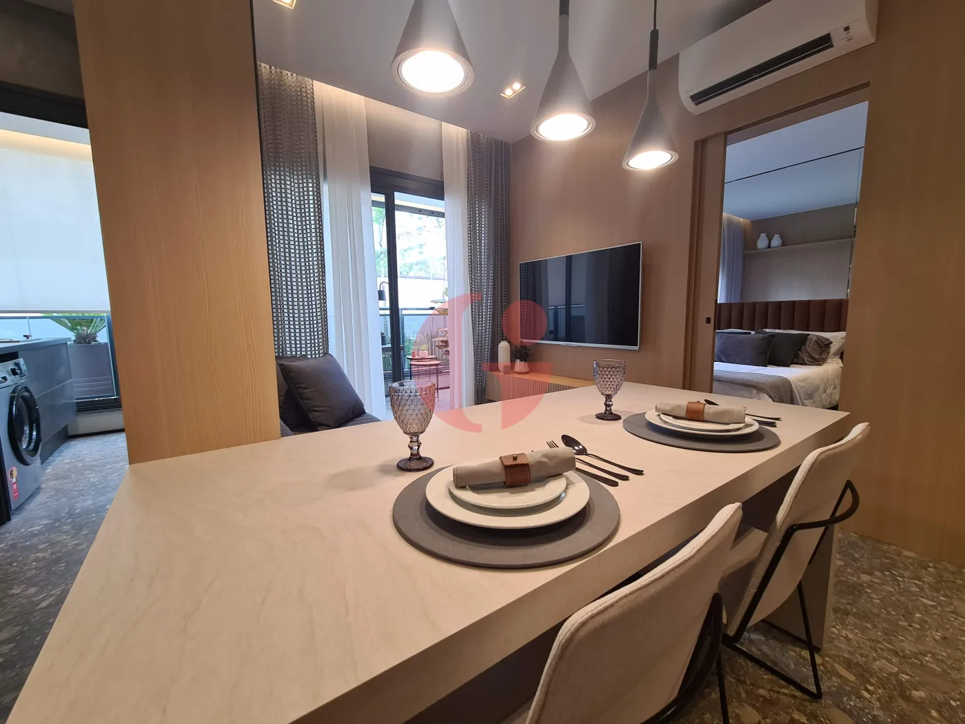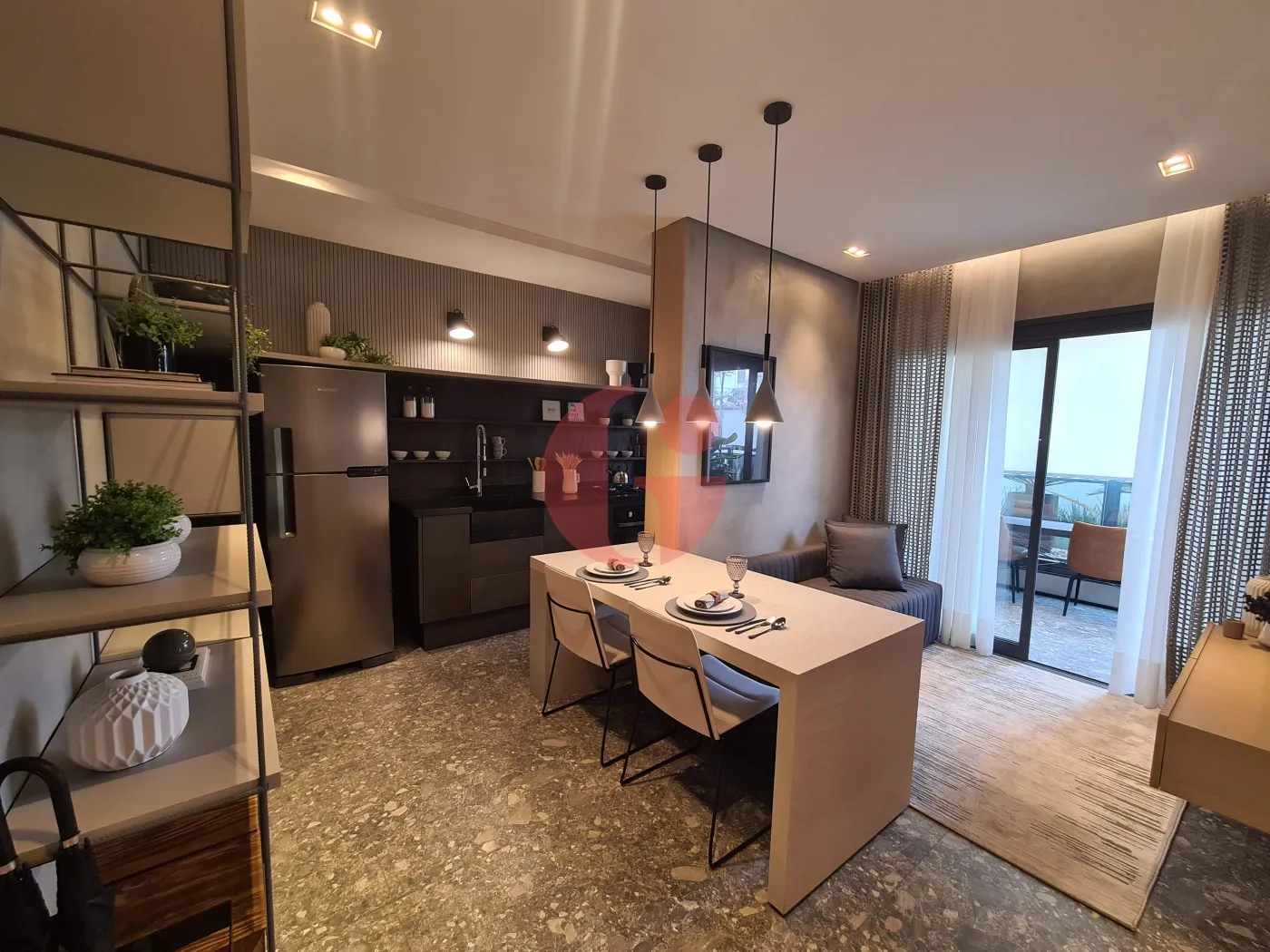 - Sala integrada com a varanda