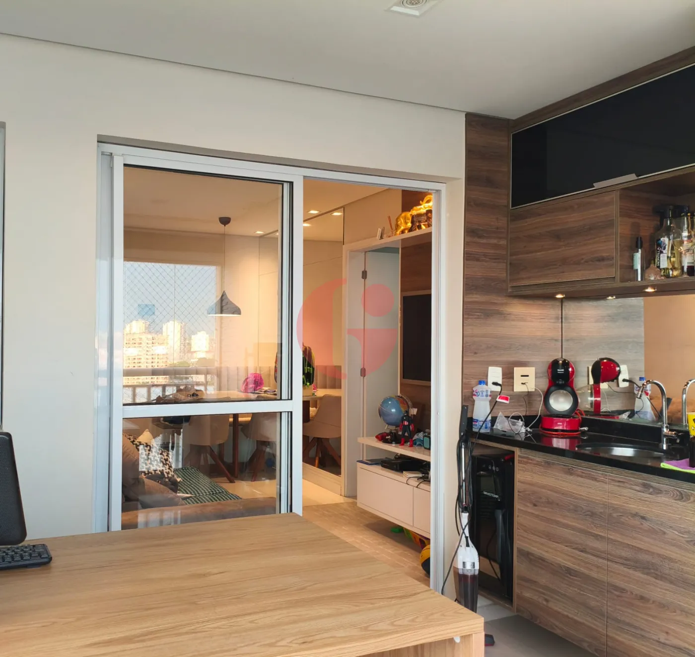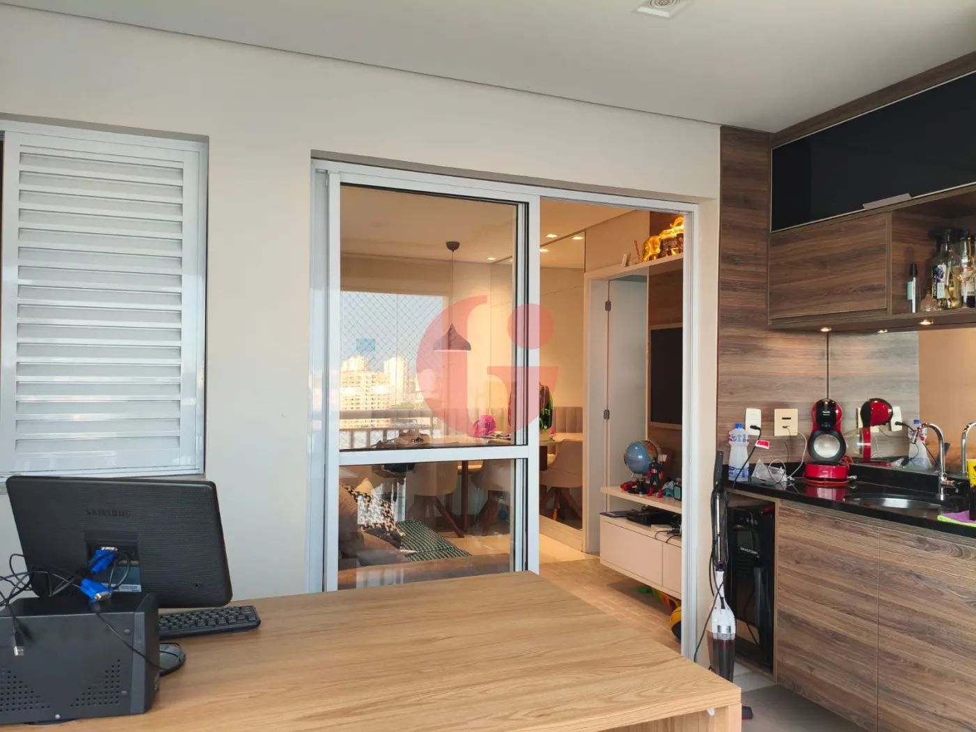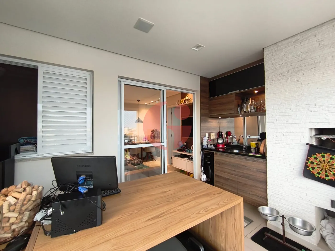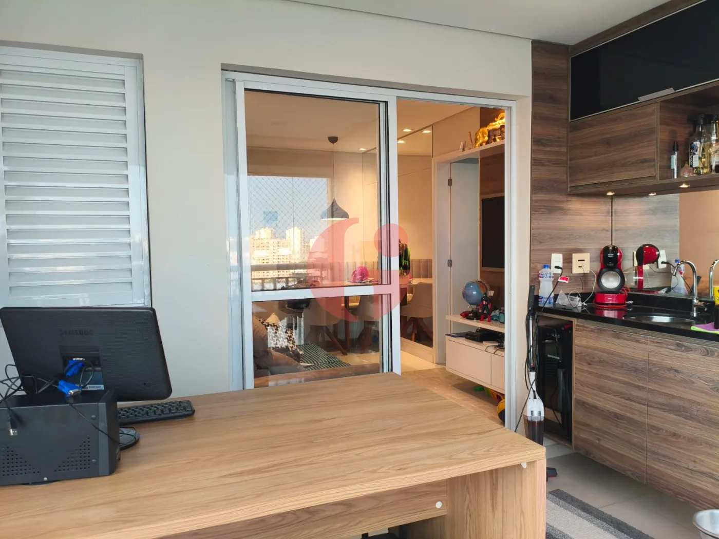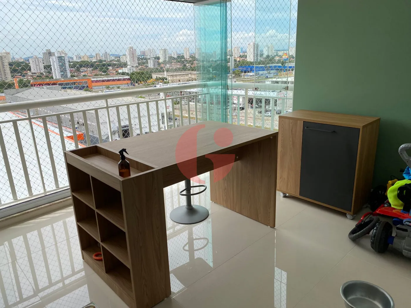 - Varanda gourmet espaçosa e envidraçada;