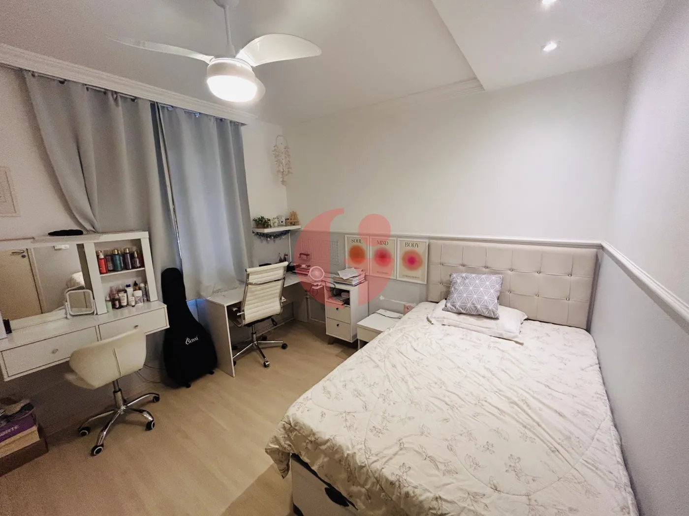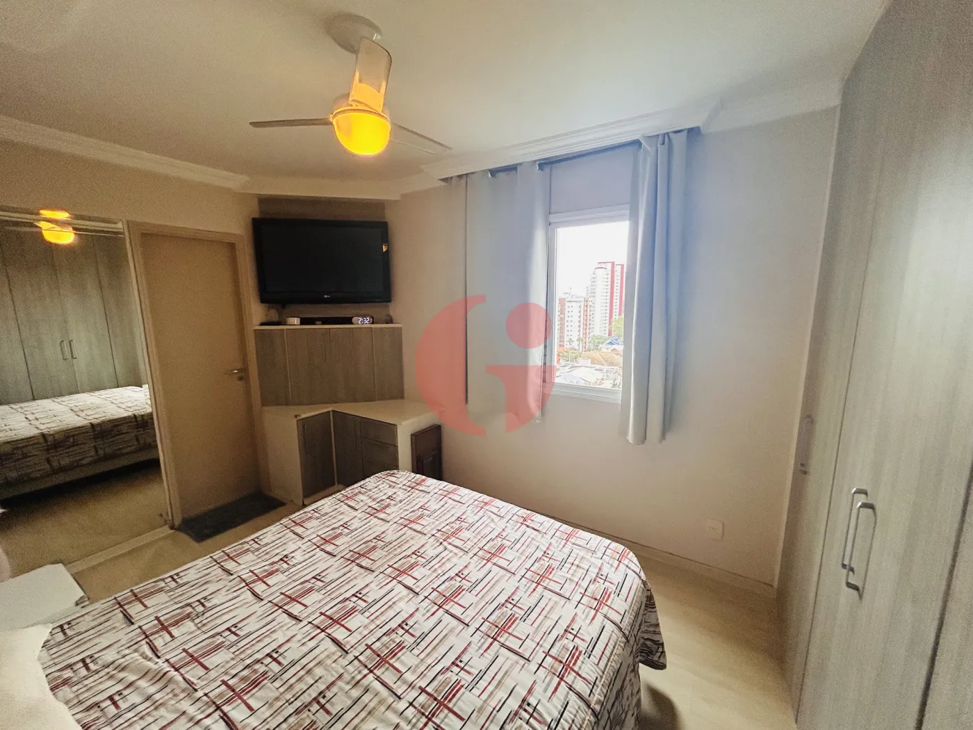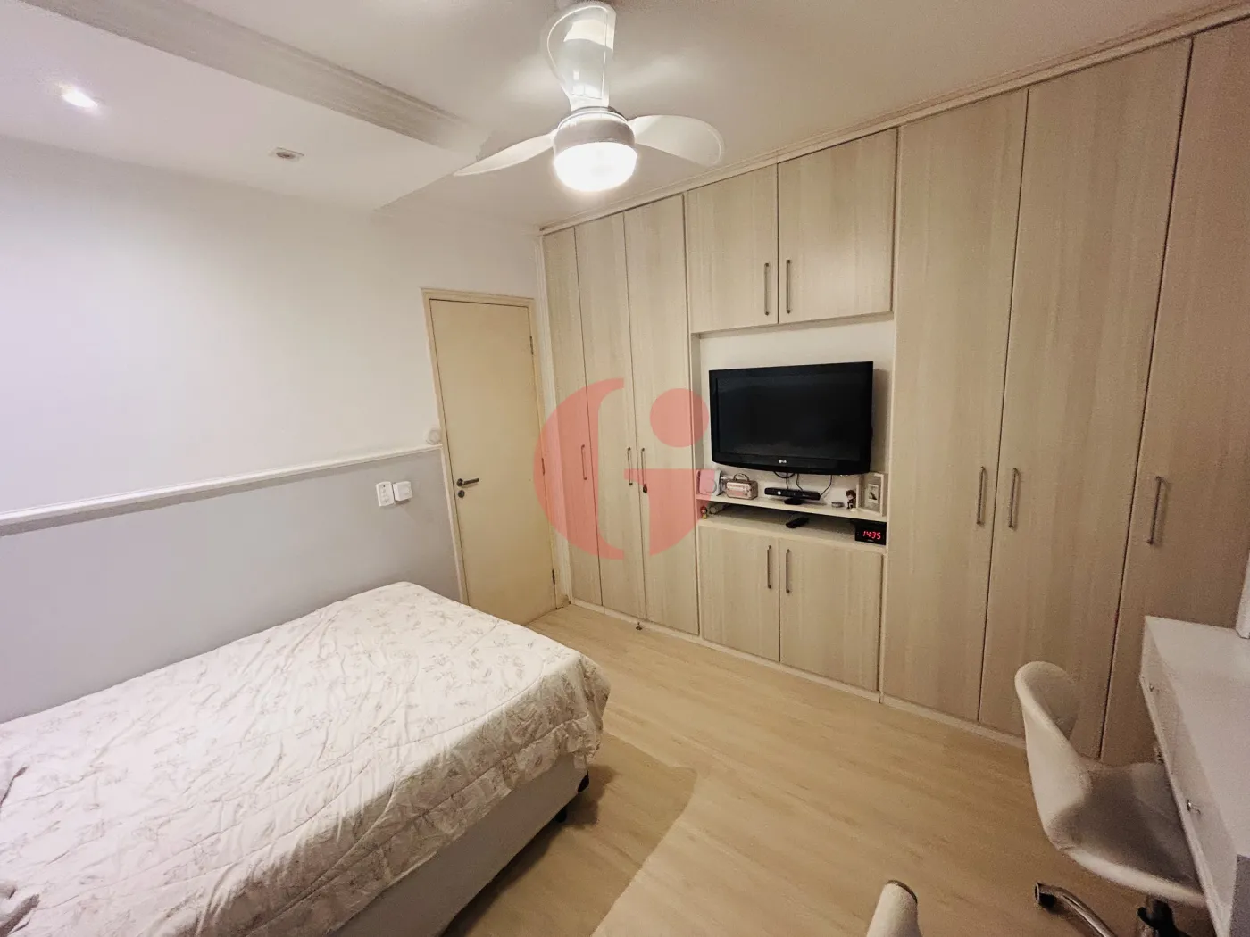 - Quartos com armários embutidos, ventilador de teto e piso laminado
