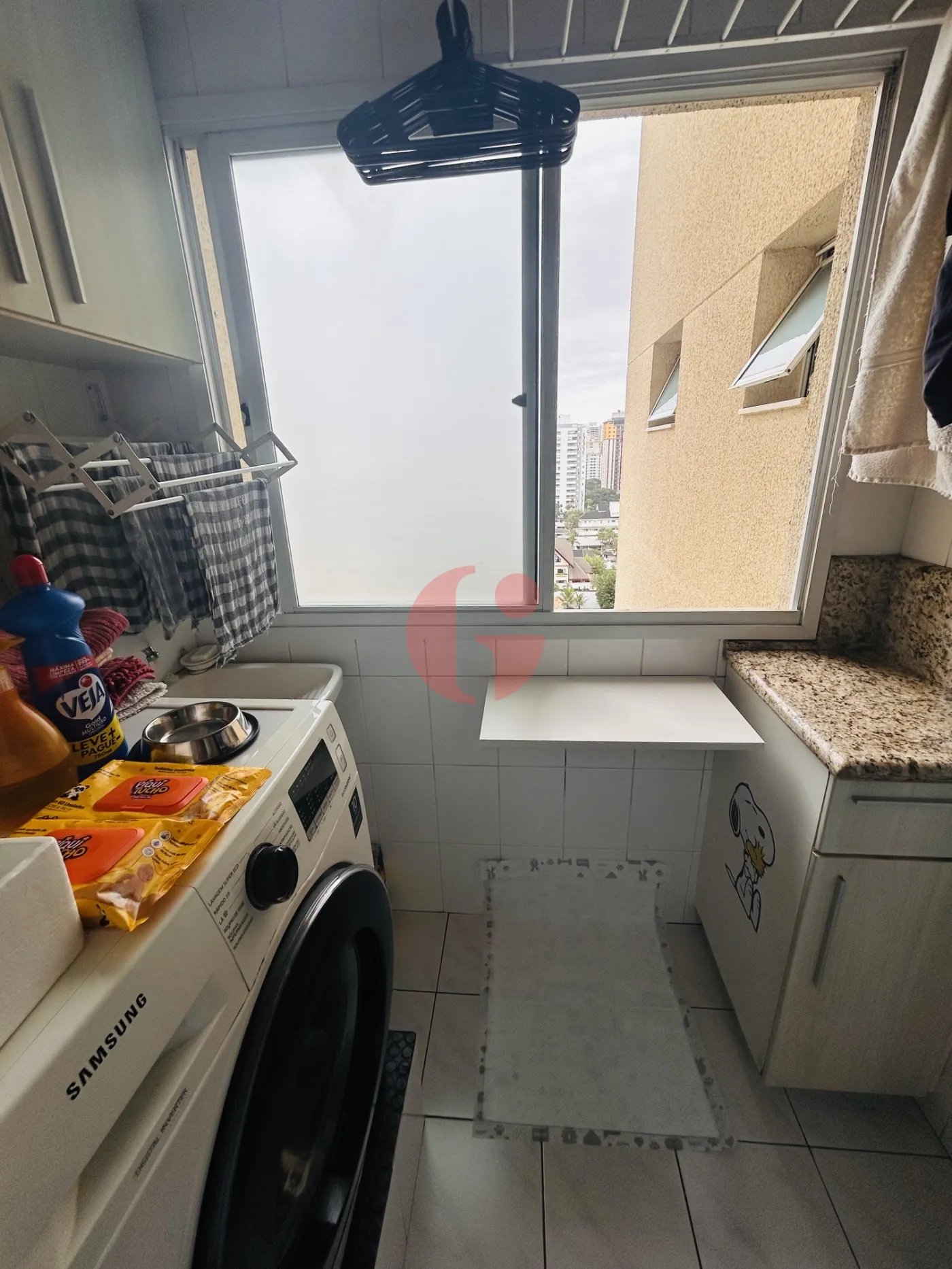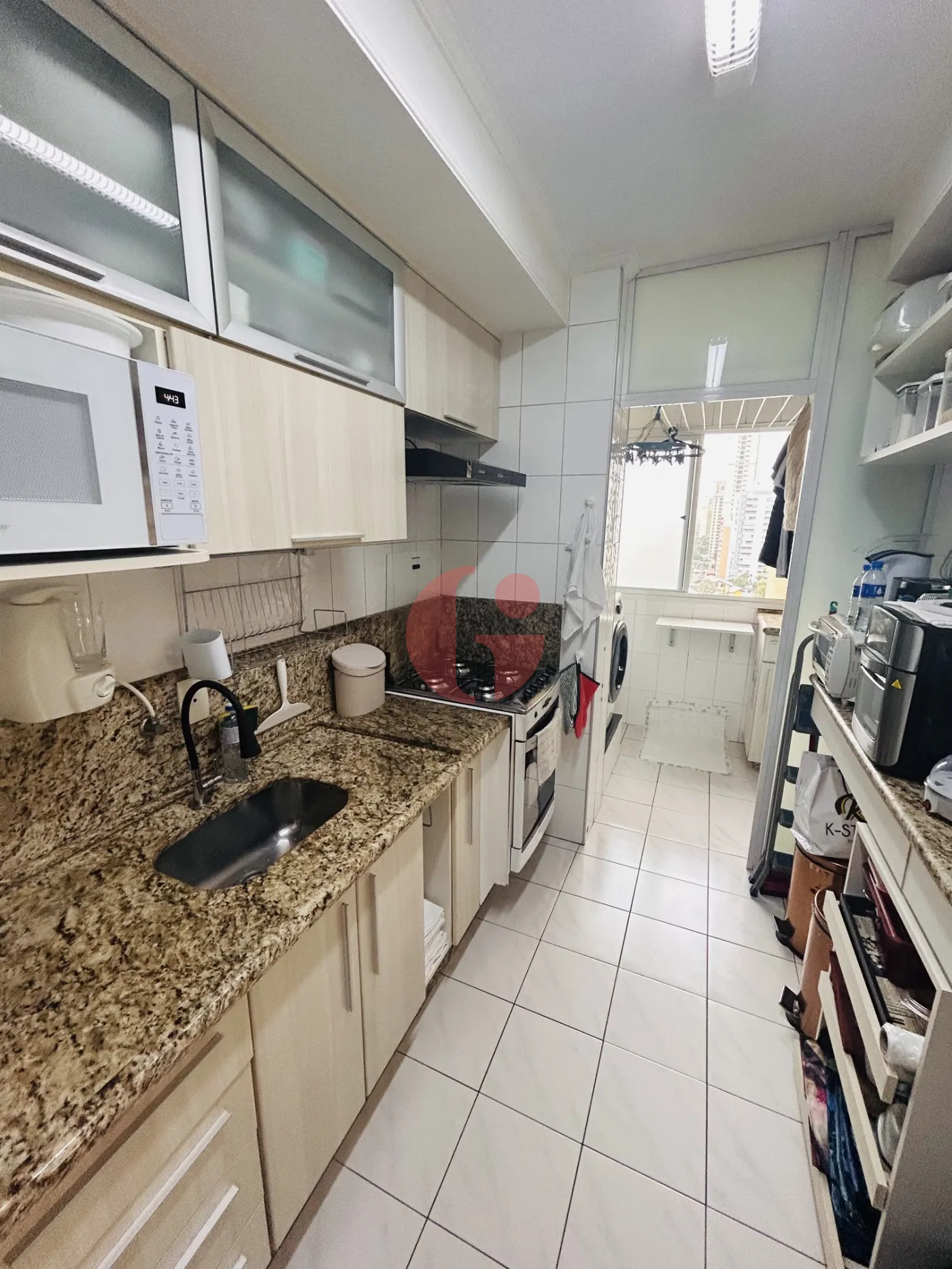 - Área de serviço com armários e piso frio