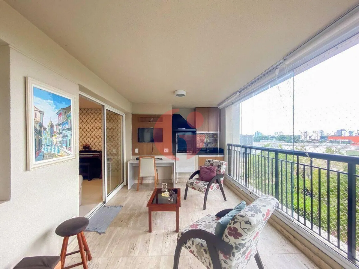 - Varanda gourmet com fechamento em cortina de vidro e churrasqueira