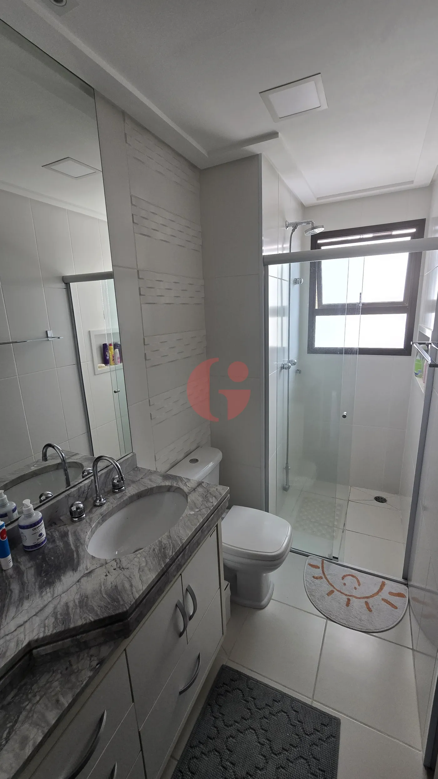- Gabinete, espelho e box blindex na suíte