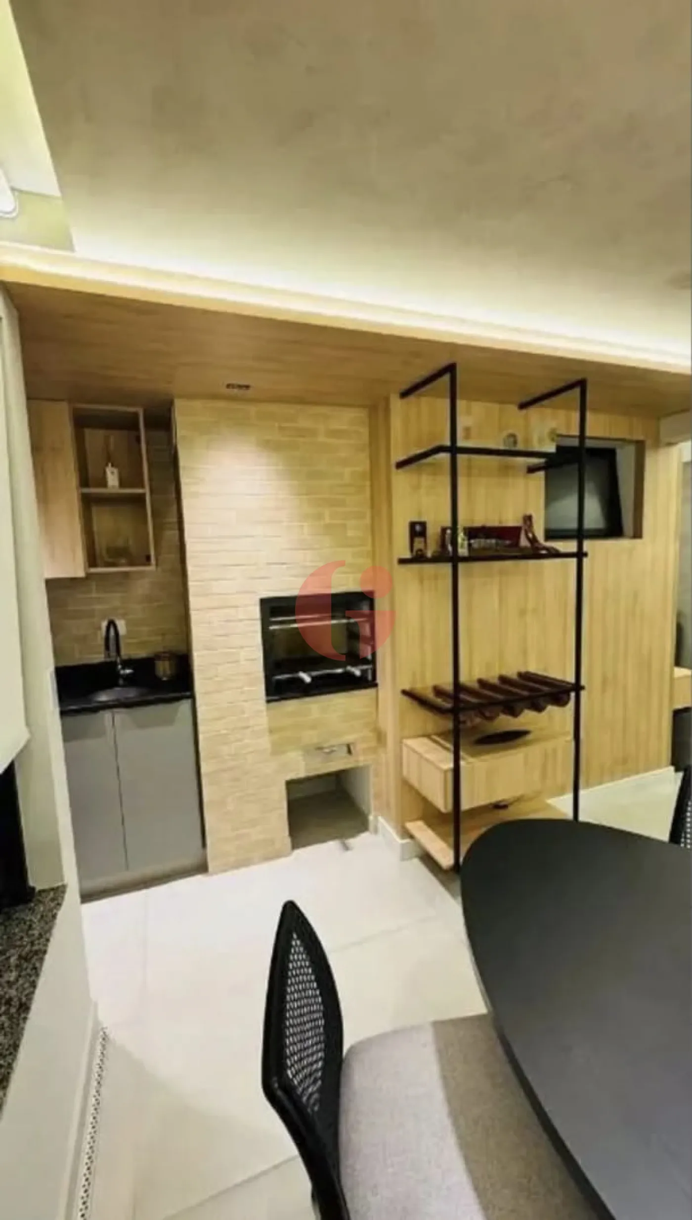 * Porteira fechada, repleto de móveis planejados e eletrodomésticos.