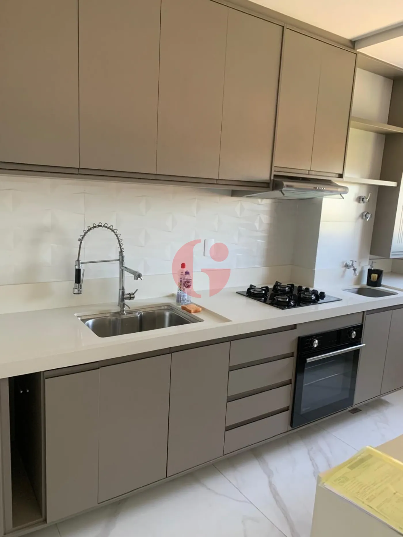 - Cozinha e lavanderia planejada com pedra quartzo branco, incluso forno, cooktop e exaustor, sistema de aquecedor a gás