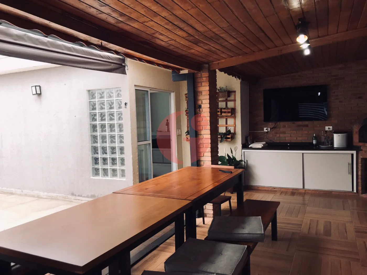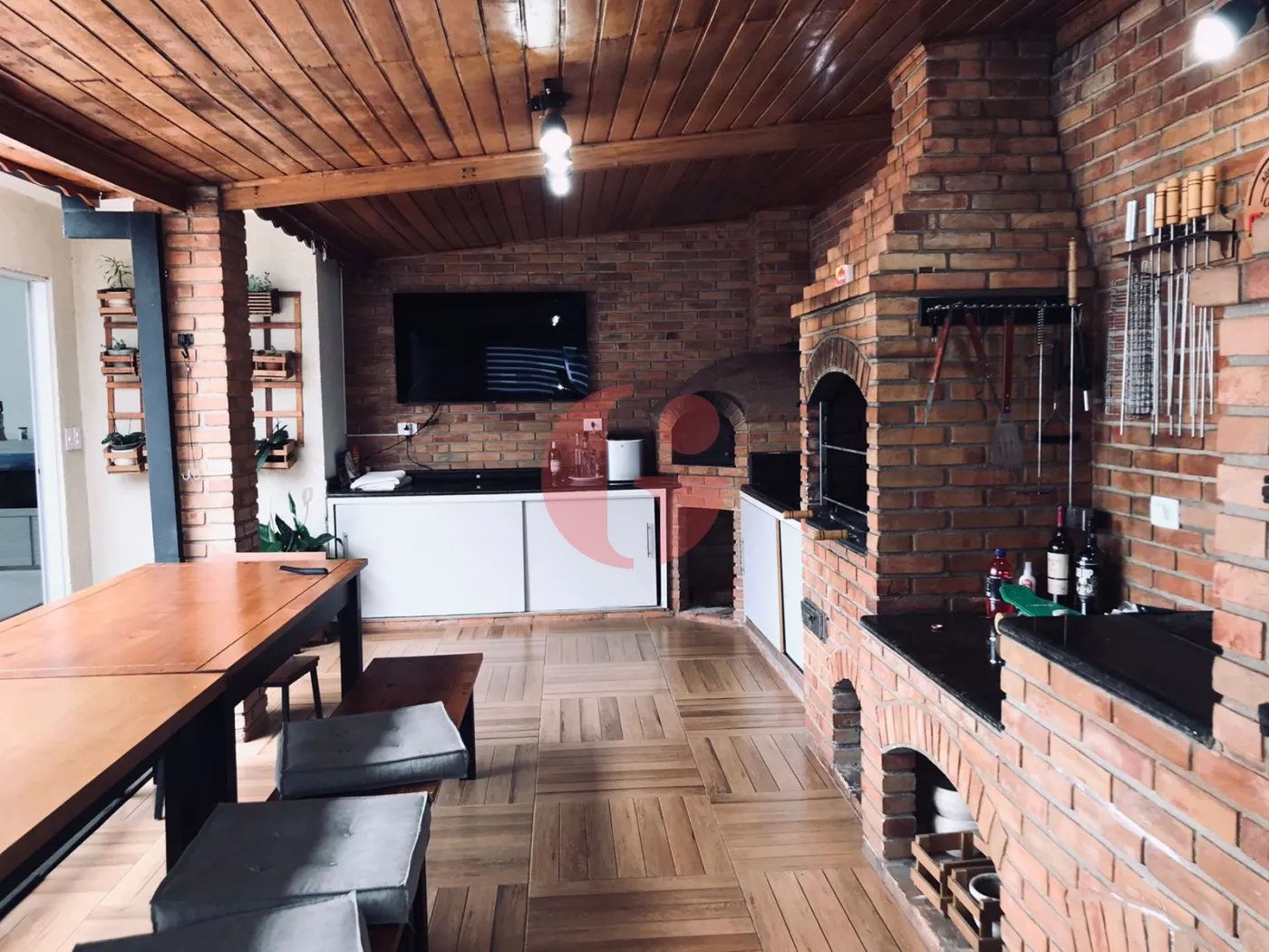 - Espaço gourmet fechado com forno de pizza, churrasqueira, fogão a lenha, quintal