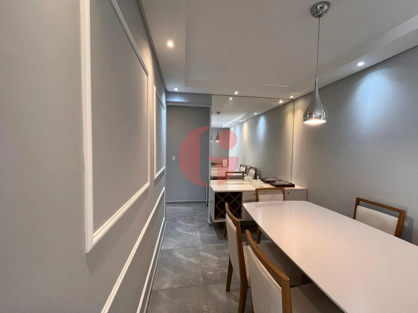 - Sala de jantar com mesa de jantar, aparador, espelho