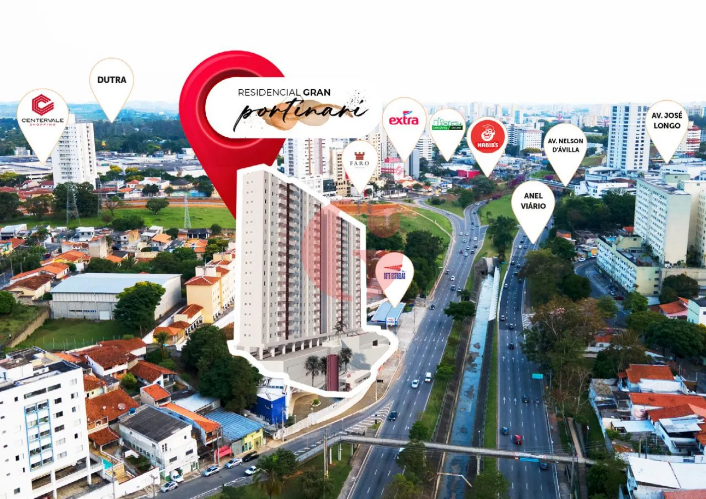 Outro destaque é a localização: com praticamente 19 mil metros quadrados de área construída, o Gran Portinari fica na região central de São José dos Campos, próximo ao Center Vale Shopping, Rodoviária Nova, escolas, supermercados, restaurantes e outros.