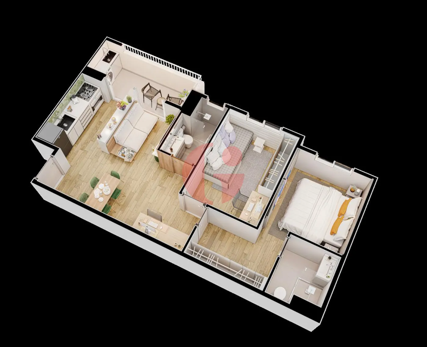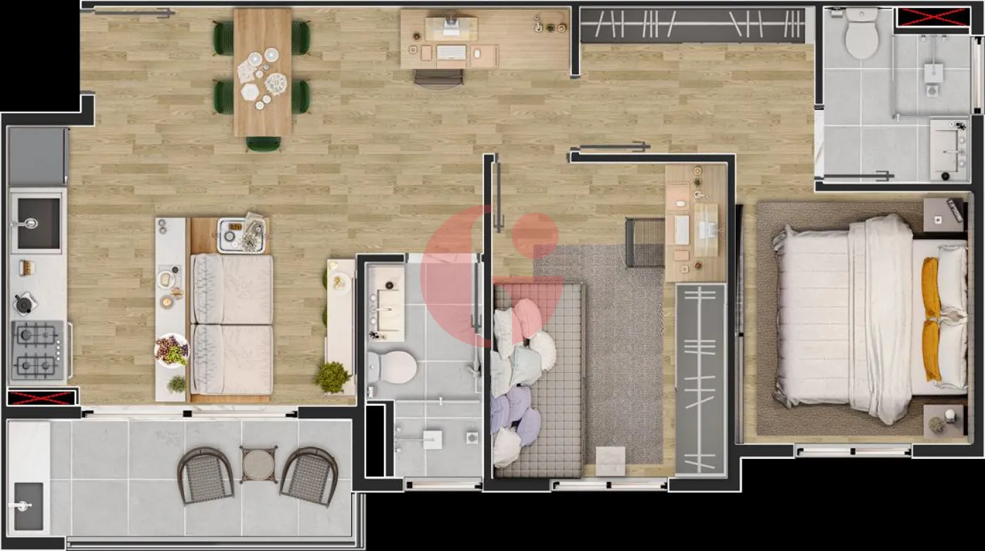 - 2 quartos sendo 1 suíte