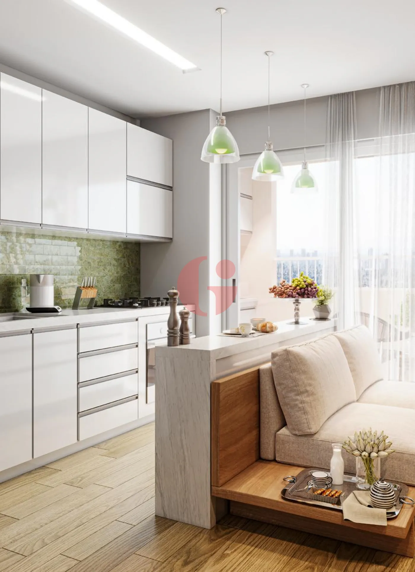 - Sala para 2 ambientes integrada à sacada
