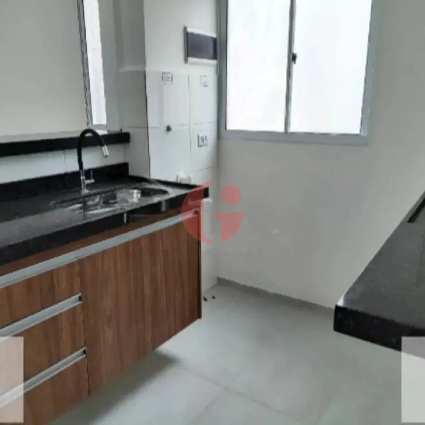 - Cozinha americana bancadas em Mármore, pia com gabinete e tanque com cuba Inox, banheiro com gabinete e box