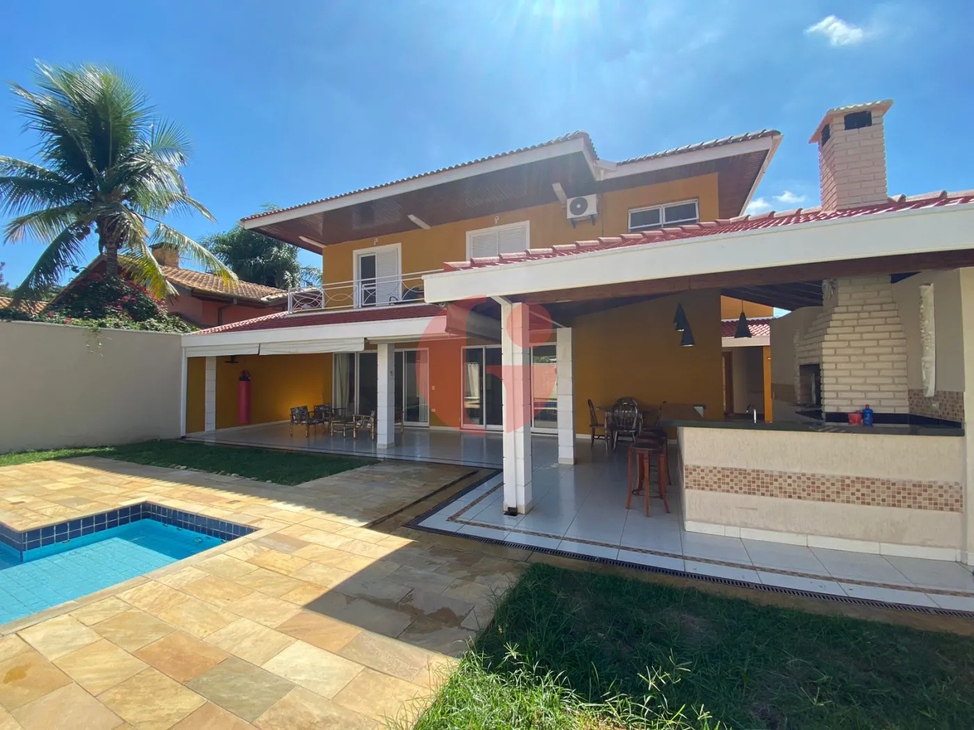 - Área externa com piscina e área gourmet com churrasqueira, banheiro na área da piscina