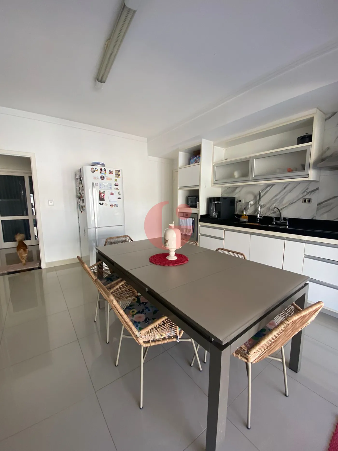 - Cozinha ampla repleta de armários, com copa.
