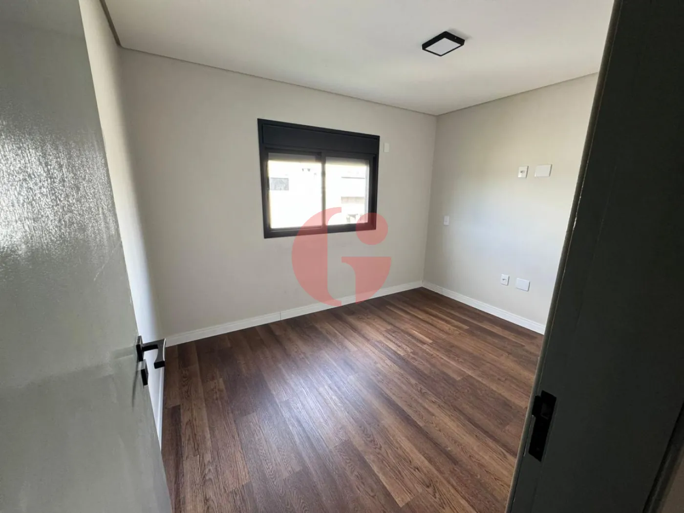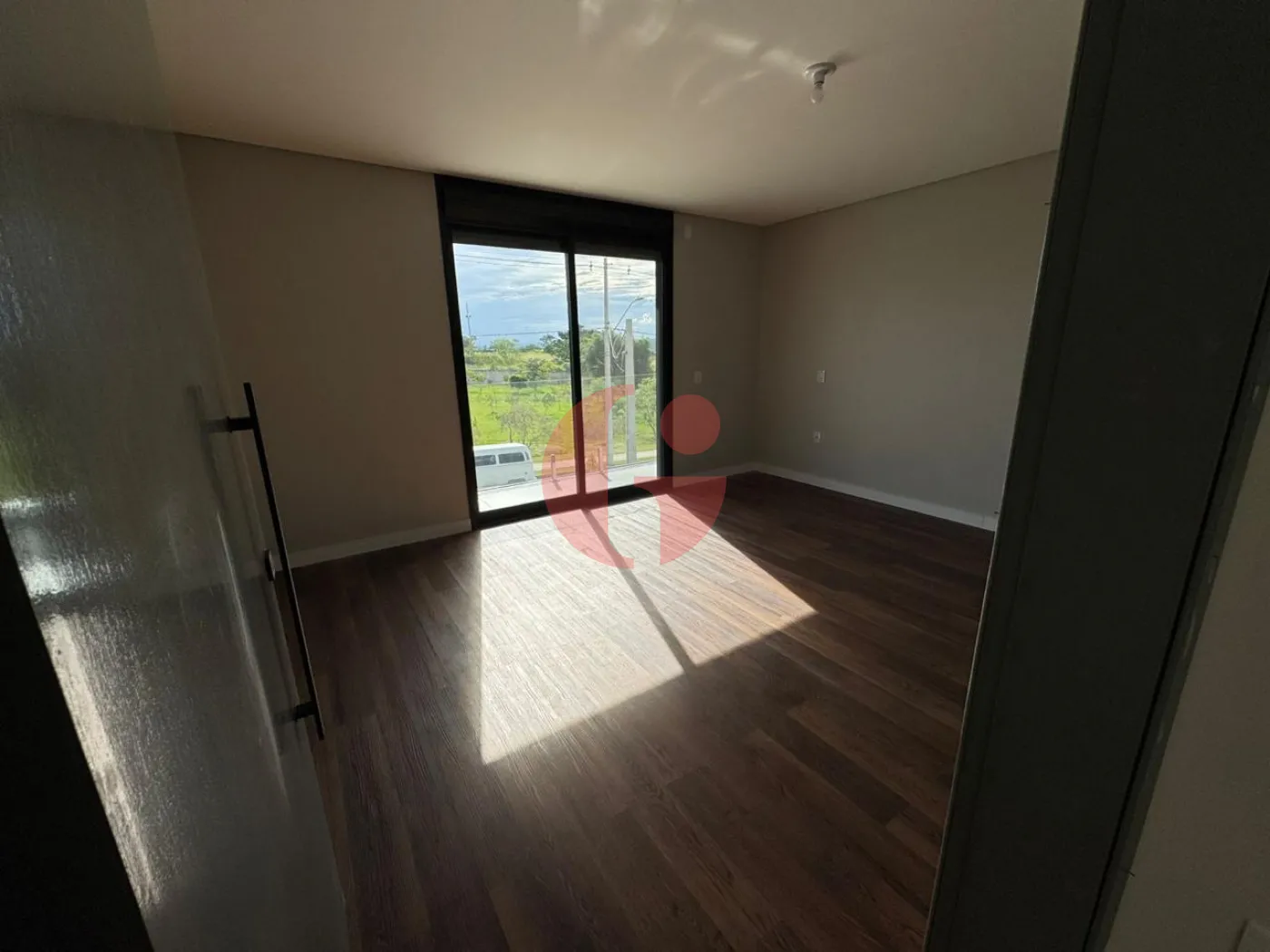 A Porta do quarto do casal que dá visão para a piscina é toda automatizada por controle remoto.
