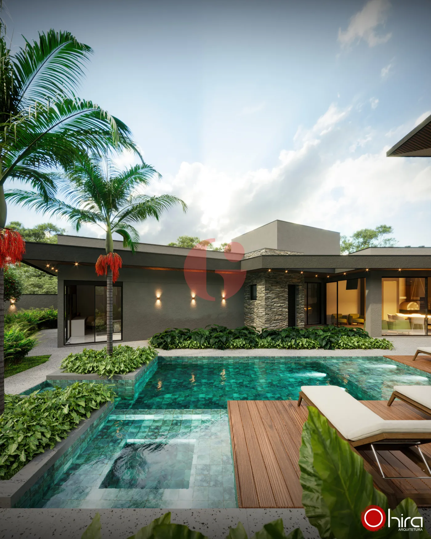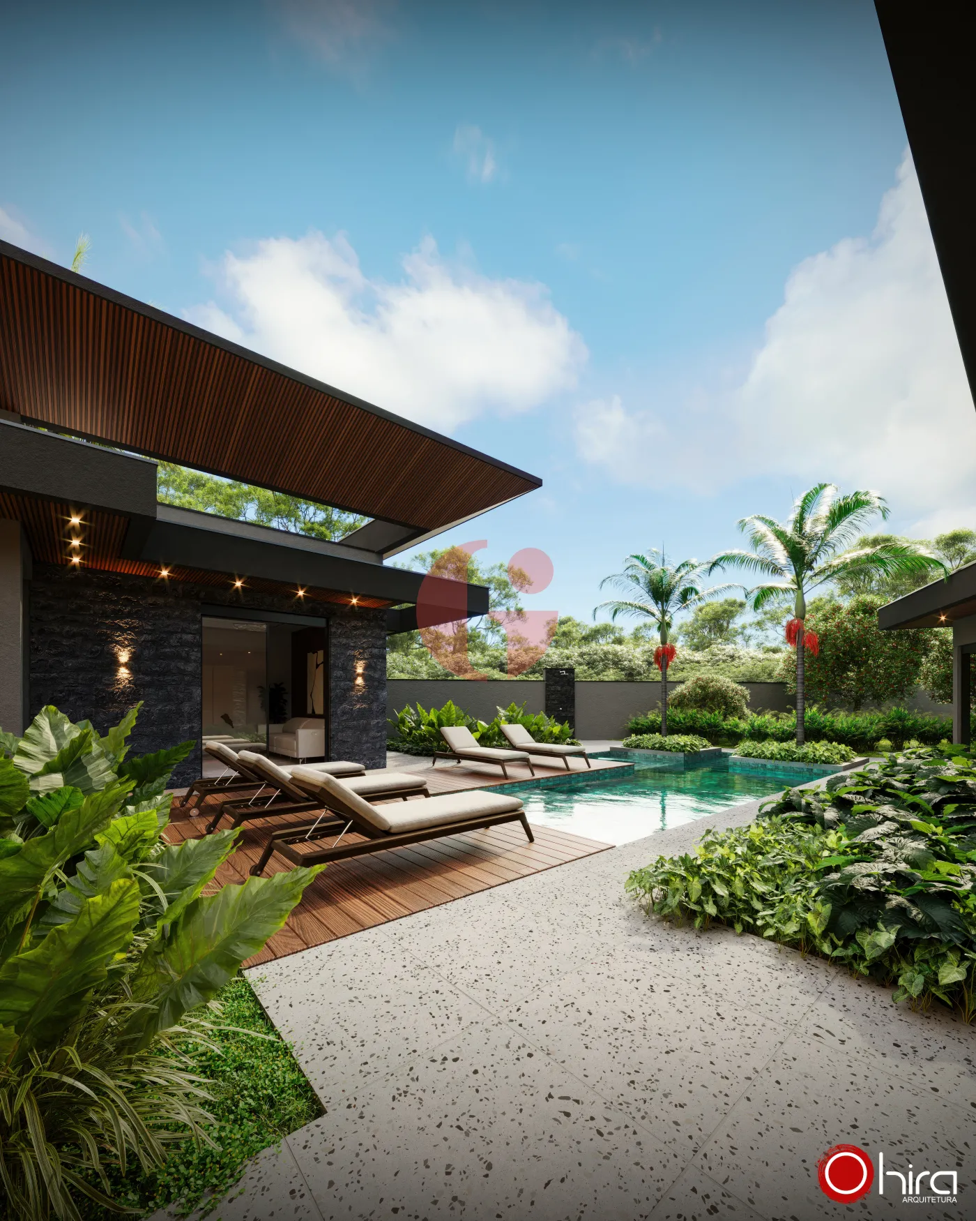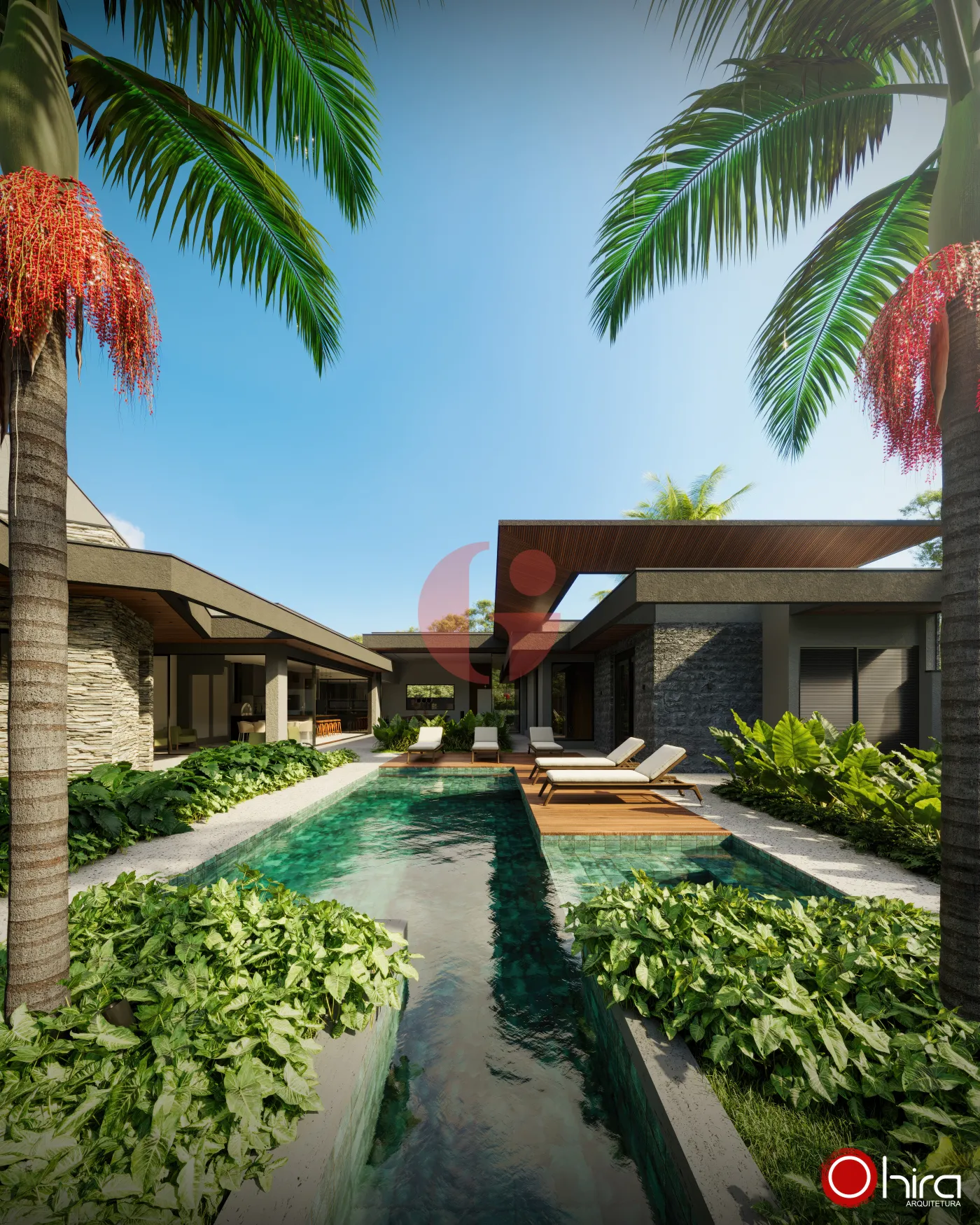 Piscina com raia de 25 metros e área de descanso;