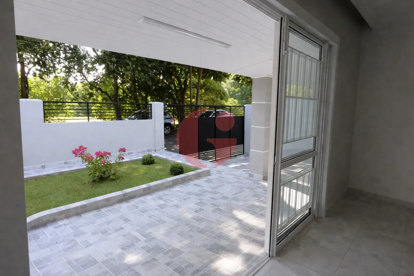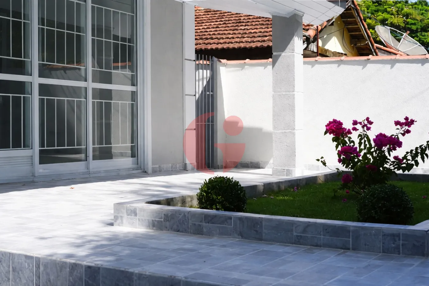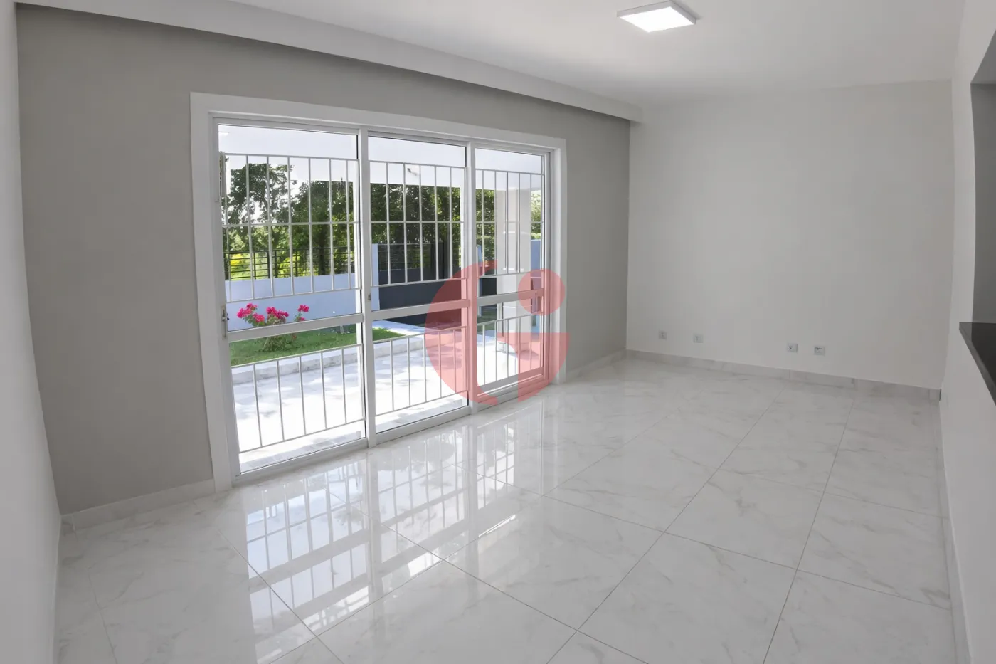 - Porta balcão com acesso à varanda e jardim frontal