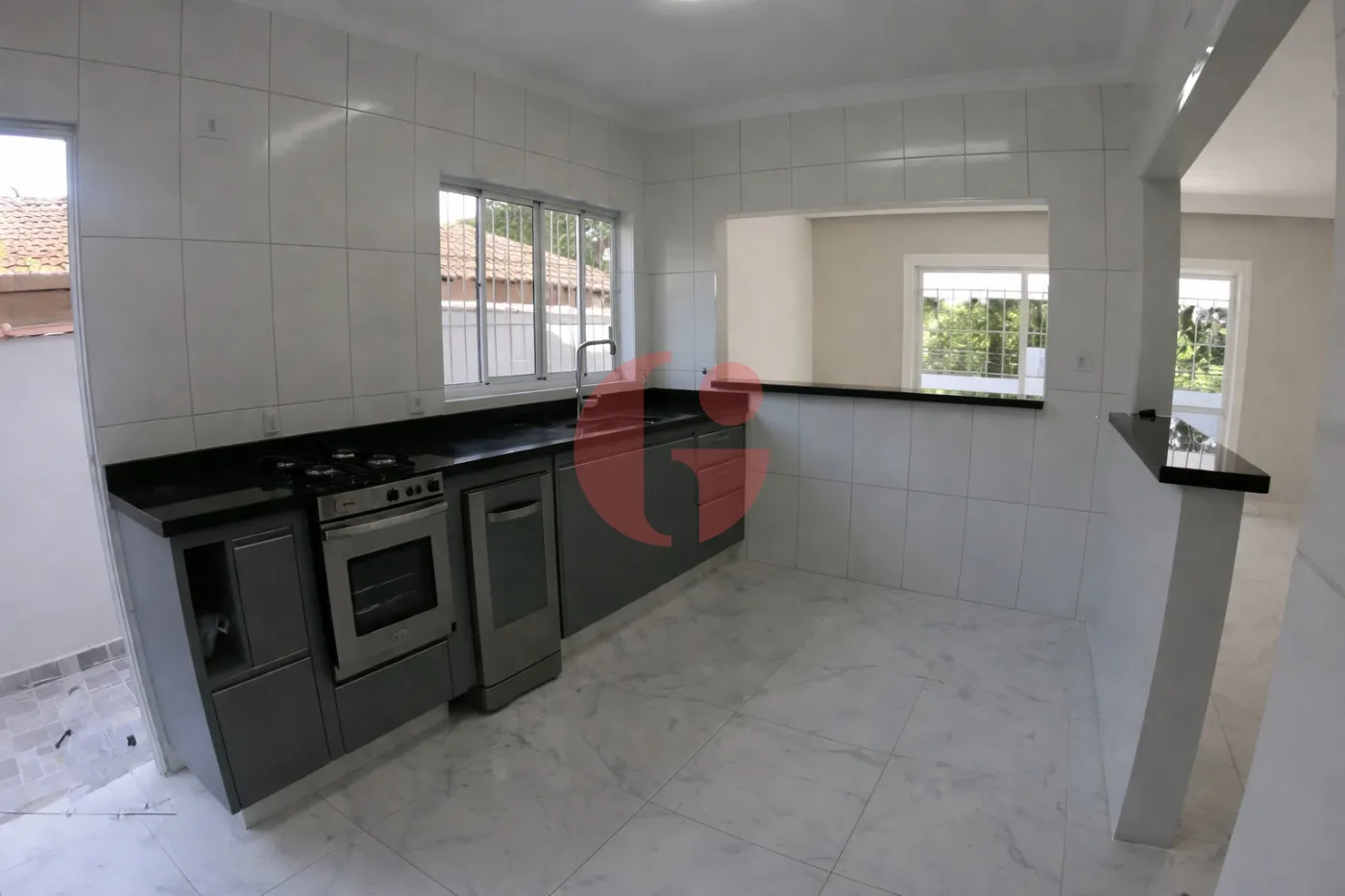 - Cozinha americana completa, com armários planejados, fogão e lava louças