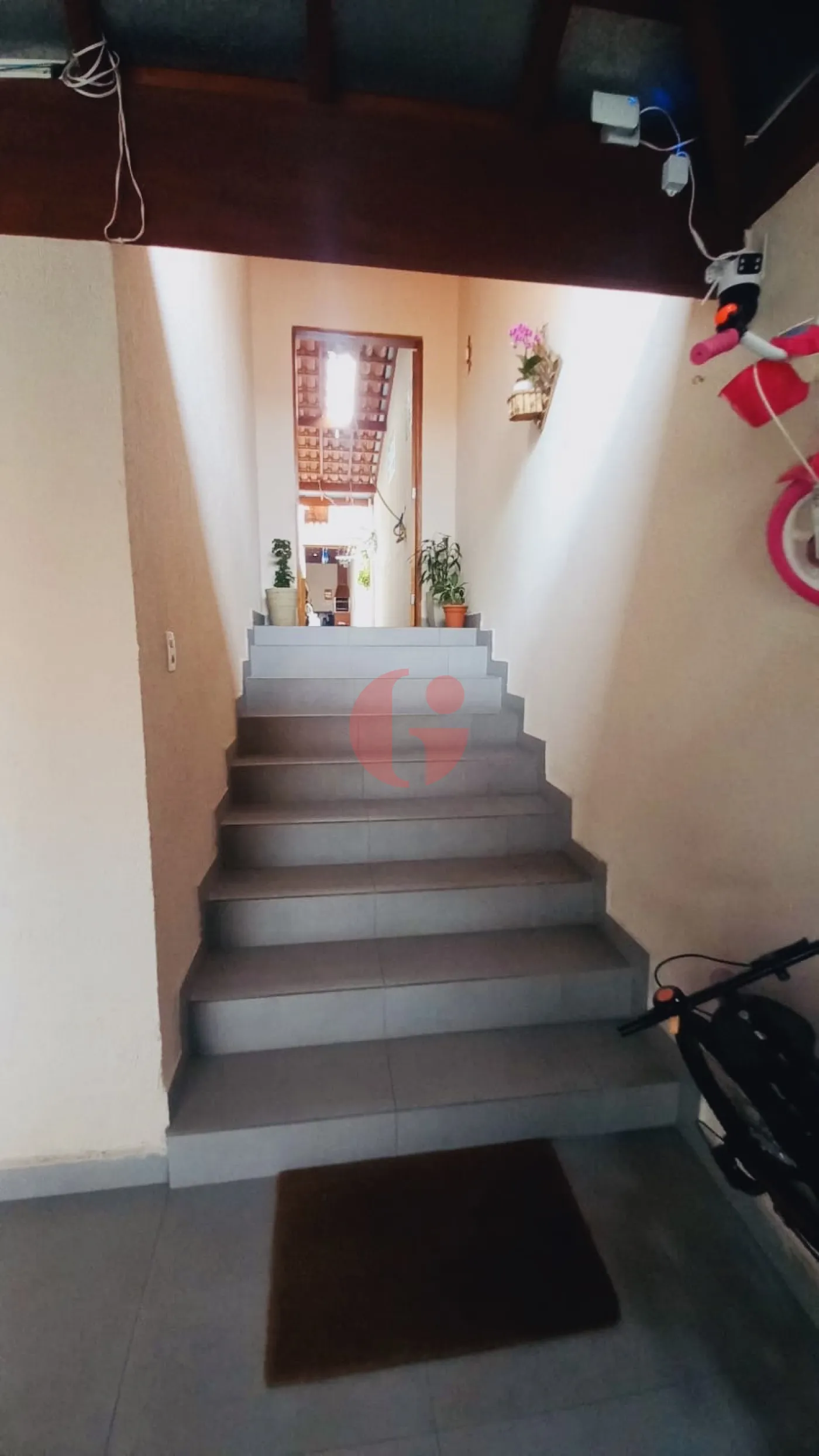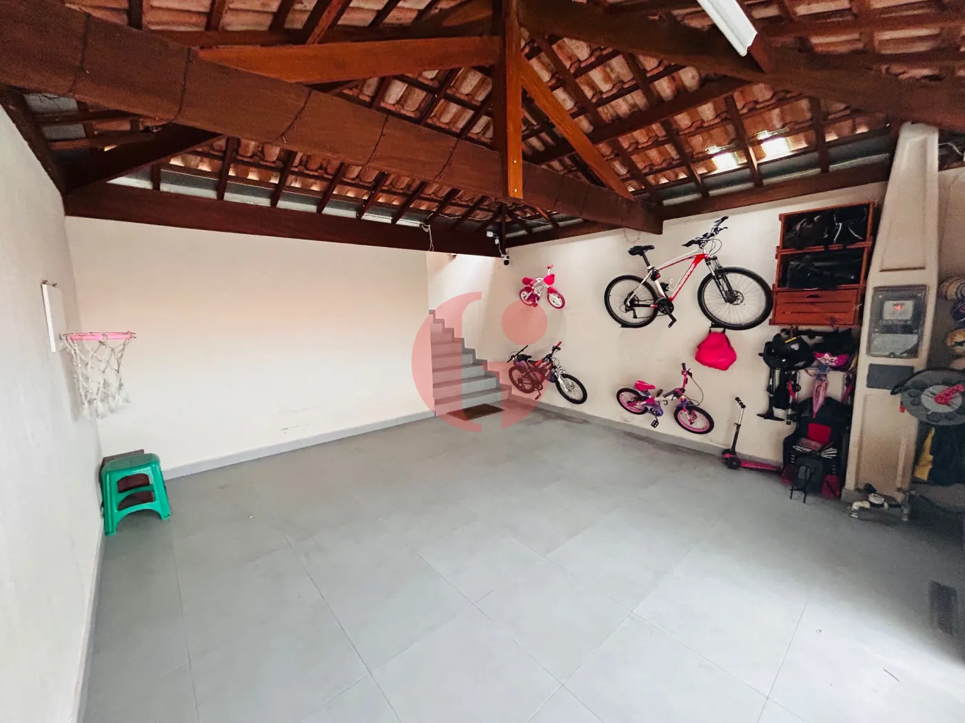 - Vaga de garagem com portão automático, toda em piso porcelanato com acesso em escada a casa