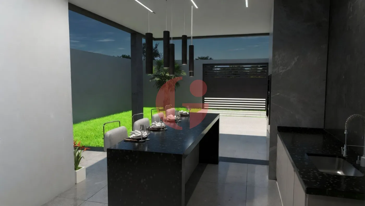 - Sala totalmente integrada com a cozinha, com pé direito de 3,5m