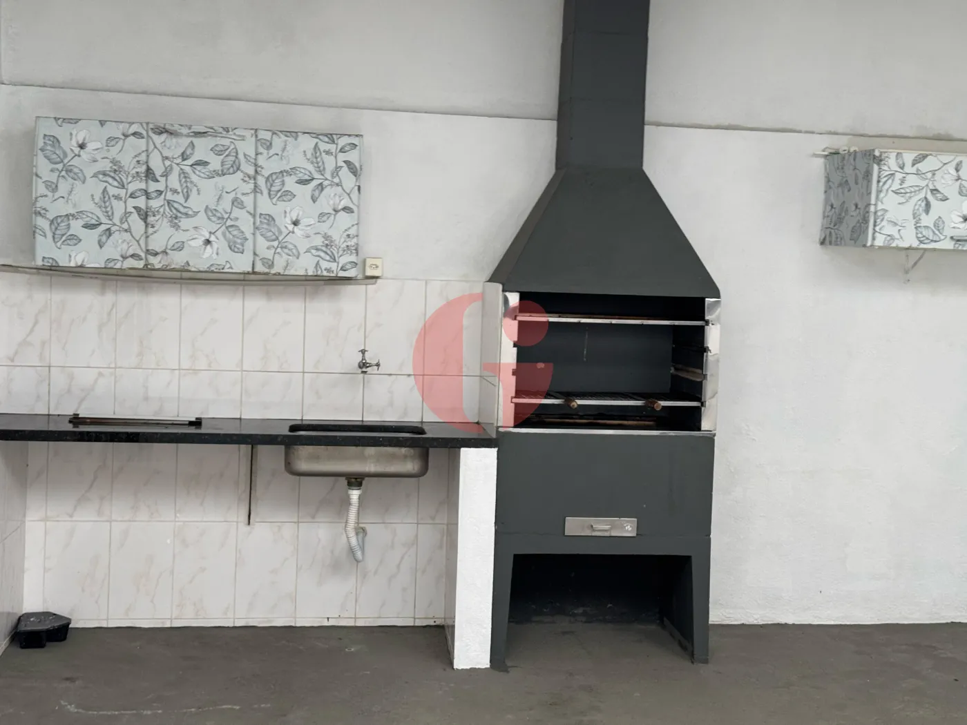 Área de lazer espaçosa e com churrasqueira.
