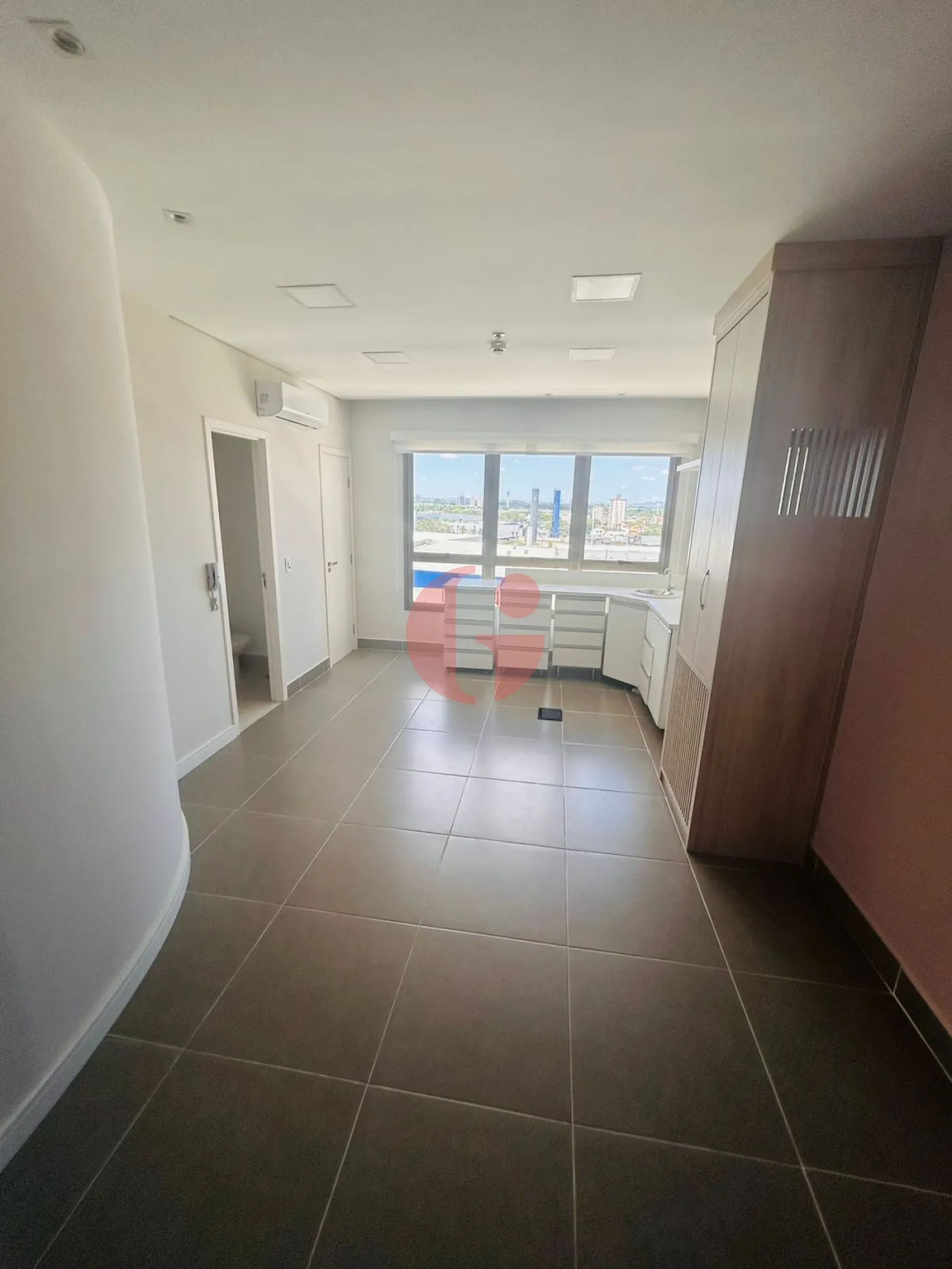 - Sala comercial ampla com piso em porcelanato com ar condicionado