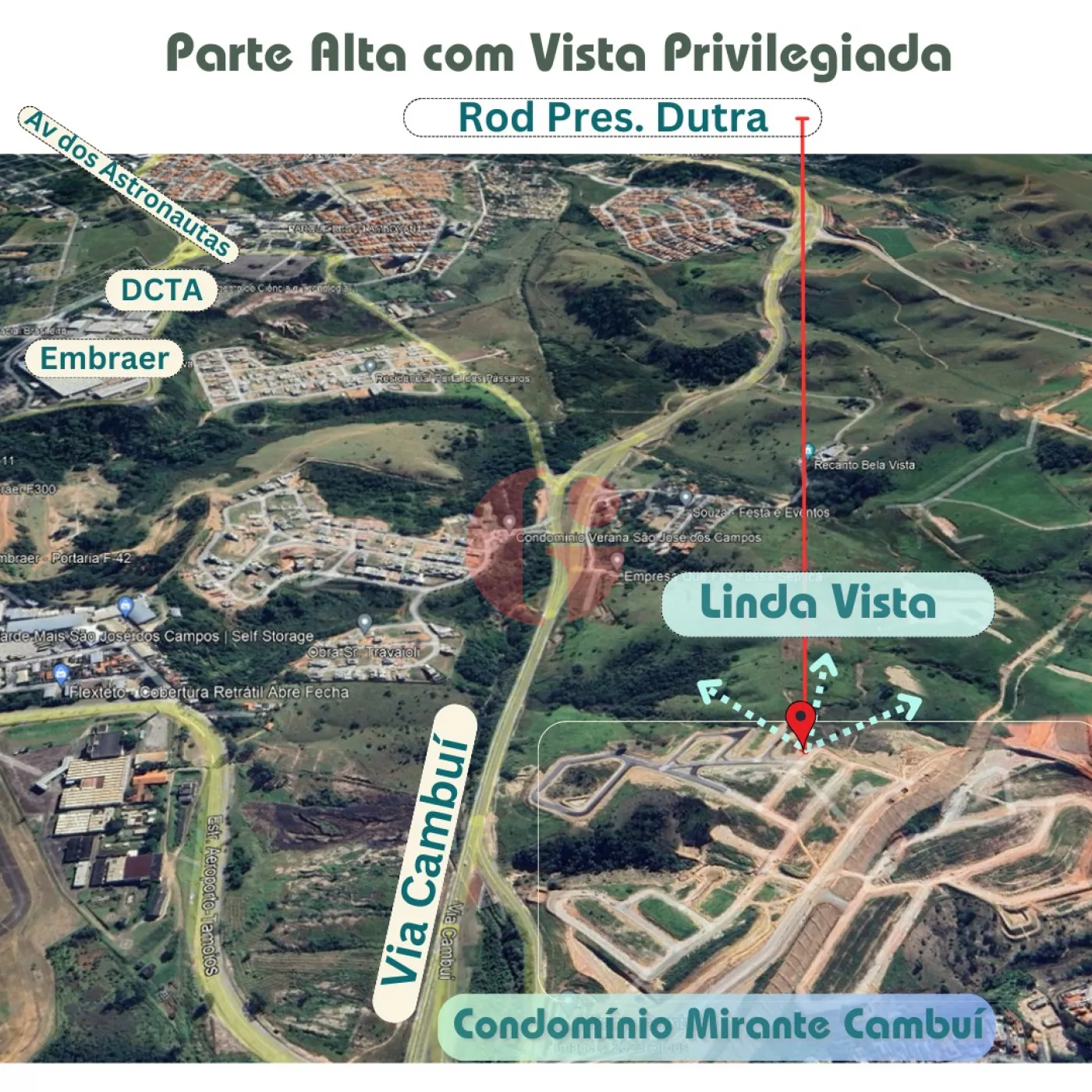 - Próximo a Via Cambuí, Acesso rápido para Rodovia Presidente Dutra e Rodovia dos Tamoios, Rodovia Carvalho Pinto e as diferentes regiões da cidade, pela Via Cambuí.