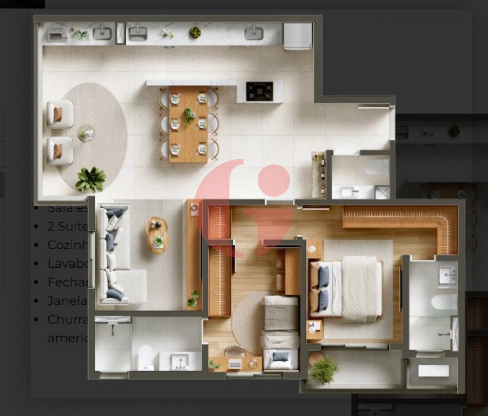 O empreendimento conta com apartamentos de 73 m² a 87,05 m², com plantas modernas e flexíveis, que permitem diferentes configurações conforme o estilo de vida de cada morador. Os ambientes são bem distribuídos e a estrutura em concreto armado possibilita maior liberdade de personalização, unindo funcionalidade e conforto em cada detalhe.